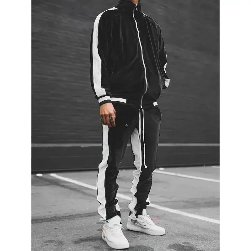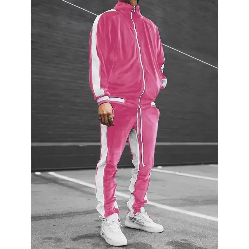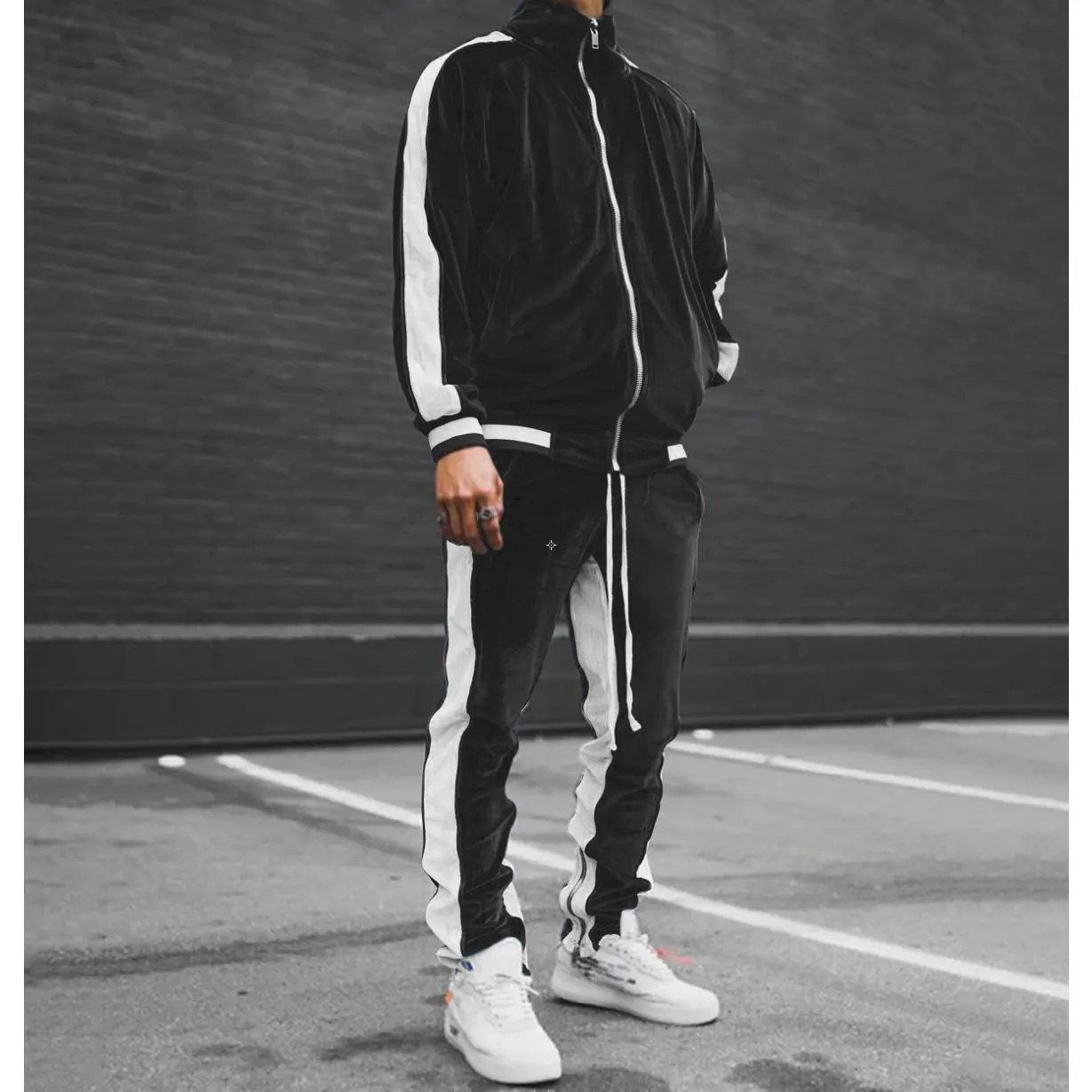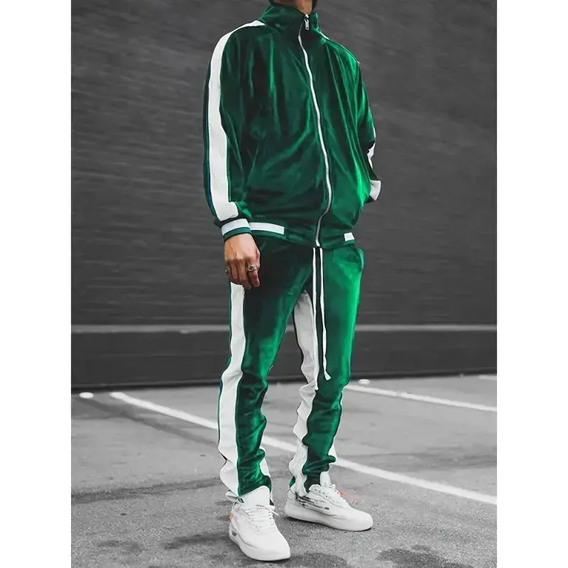 Men's Velour Tracksuit Sweatsuit Set Jogging Suits Full Zip Casual Jackets Pants 2pcs Outfit Athletic Workout