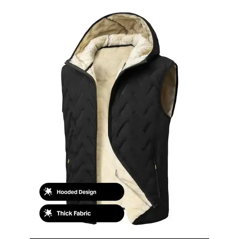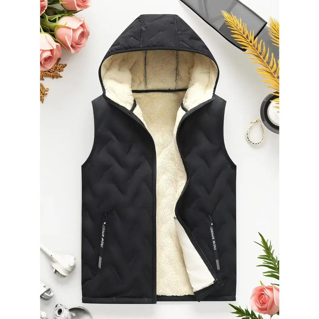 ��Thick Fabric��: Constructed with thick fabric to provide insulation and warmth during fall and winter outdoor activities. ��Sleeveless Design��: Features a sleeveless cut that allows for freedom of movement, making it suitable for active pursuits. ��Hooded Style��: Equipped with a hood for added protection against the elements, enhancing your outdoor experience. ��Plain Pattern��: Showcases a plain pattern that lends a clean and minimalist look, fitting seamlessly into various outfits. ��Fitted Silhouette��: Designed with a fitted silhouette that ensures a tailored appearance while allowing for layering underneath.