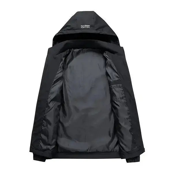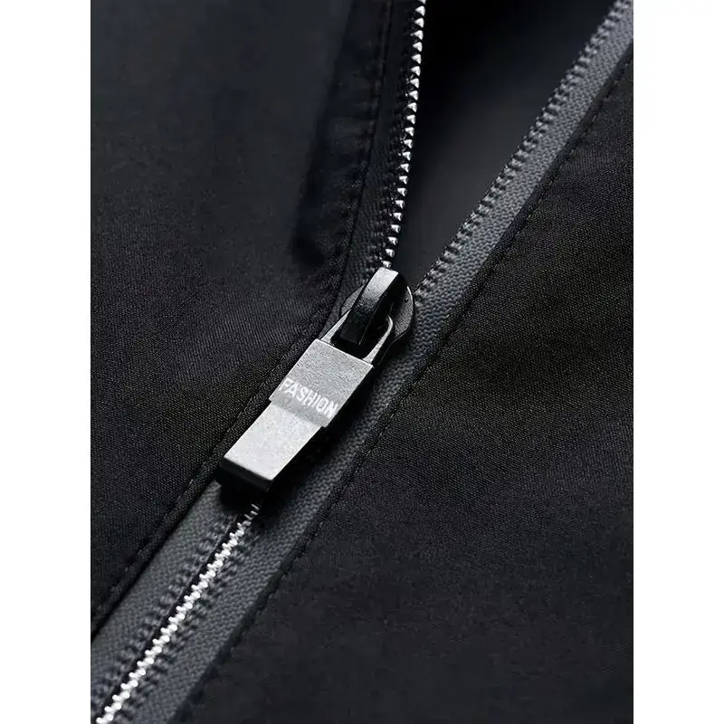 [Stylish Workwear Jacket] Durable & Stylish Men's Casual Workwear Jacket | Black Regular Fit Long Sleeve with Zipper Pockets & Hood, Polyester Lined for Comfort, Spring/Fall Outerwear