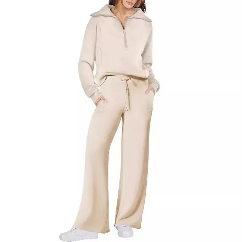 Autumn Winter Casual Sports Suit Long Sleeve Zipper Sweatshirt Wide Leg Pants 2 piece set denim matching sets women sweatsuit set outfit matching sets loungesetwomen comfort sweat set plus size 2 piece sets outfit sets Womenswear Gamis Clothes Basic