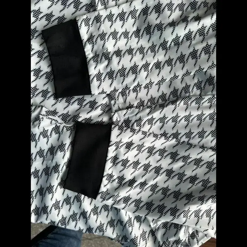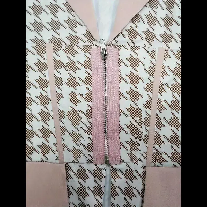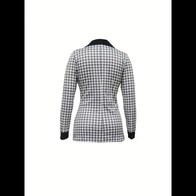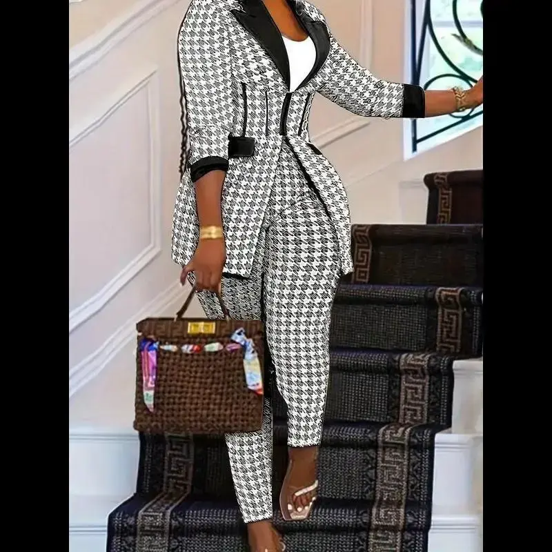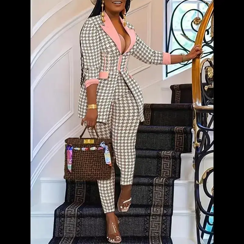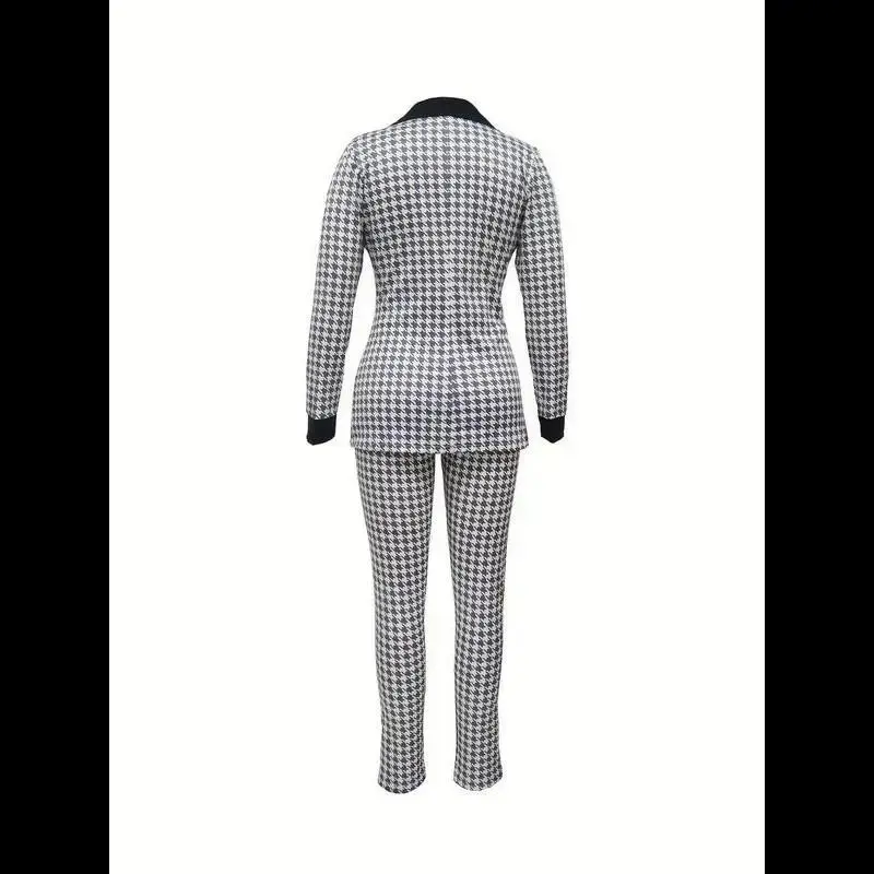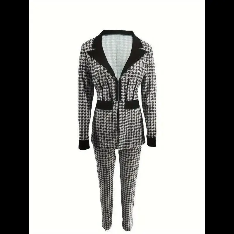 Women's Houndstooth Print Pocket Suit Sets, Business Zipper Blazer & Suit Pants, Ladies' Outfits for All Seasons