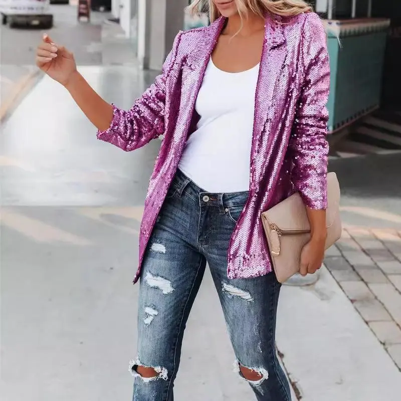 European and American Crossover 2025 Spring New Product Fashion sequin lapel women's casual suit jacket