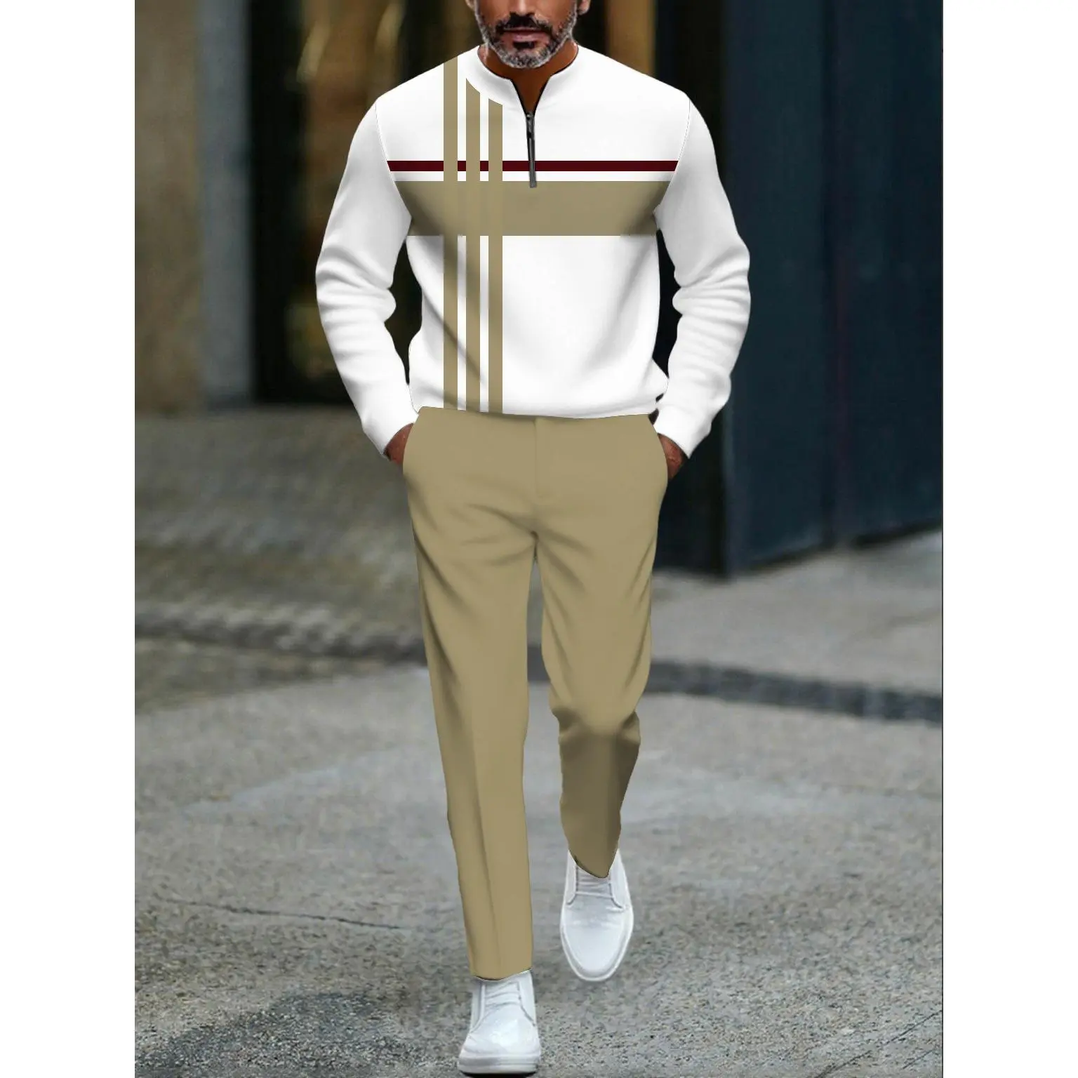 Autumn Winter Two-Piece Set Long-Sleeve Pullover Polo Shirt & Casual Sports Pants Simple Color Matching Regular Fit New Fashionable Outfit Perfect Gift for Festive Season Athletic Wear