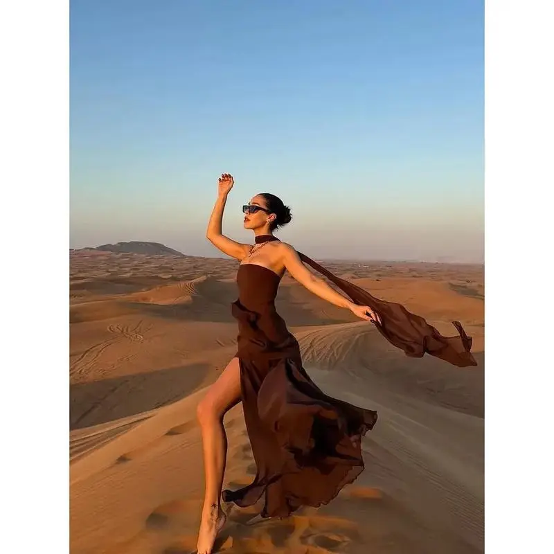 Elegant Simple Strapless Wedding Dresses Women Side Split Mesh Patchwork Prom Dresses 2025 Solid Scarf Party Chic Brides Gown Formal Black Womenswear Workwear Basic Minimalist Sleeveless Brown