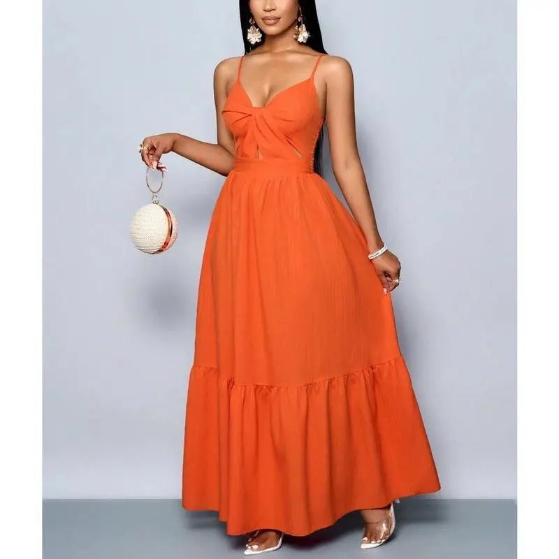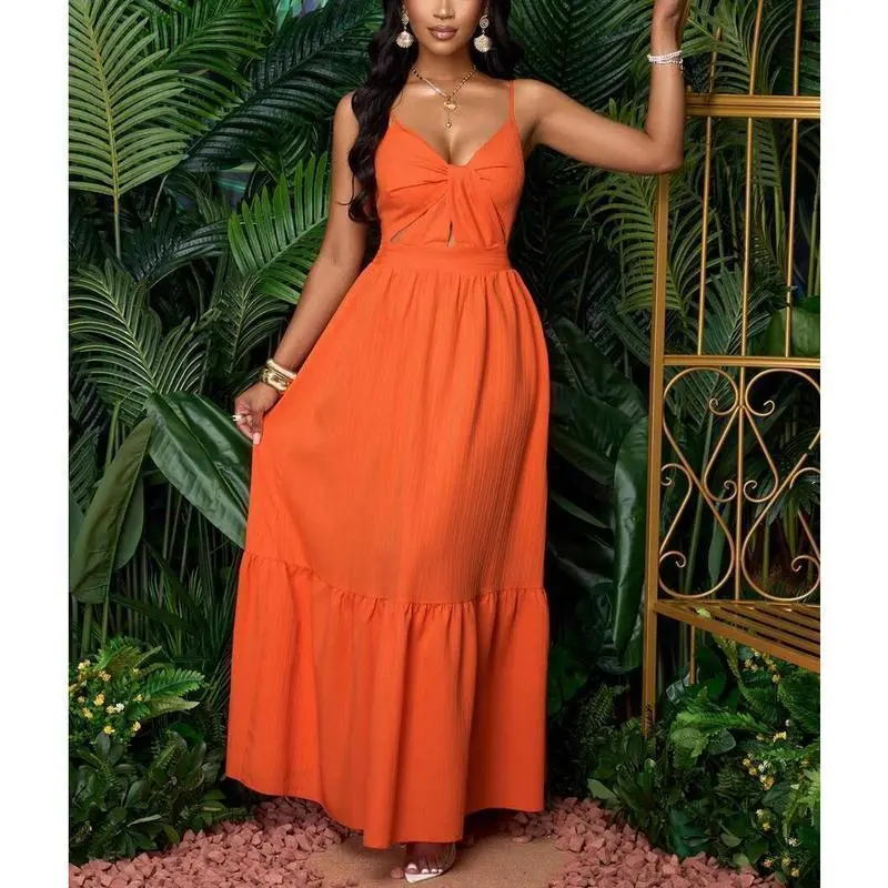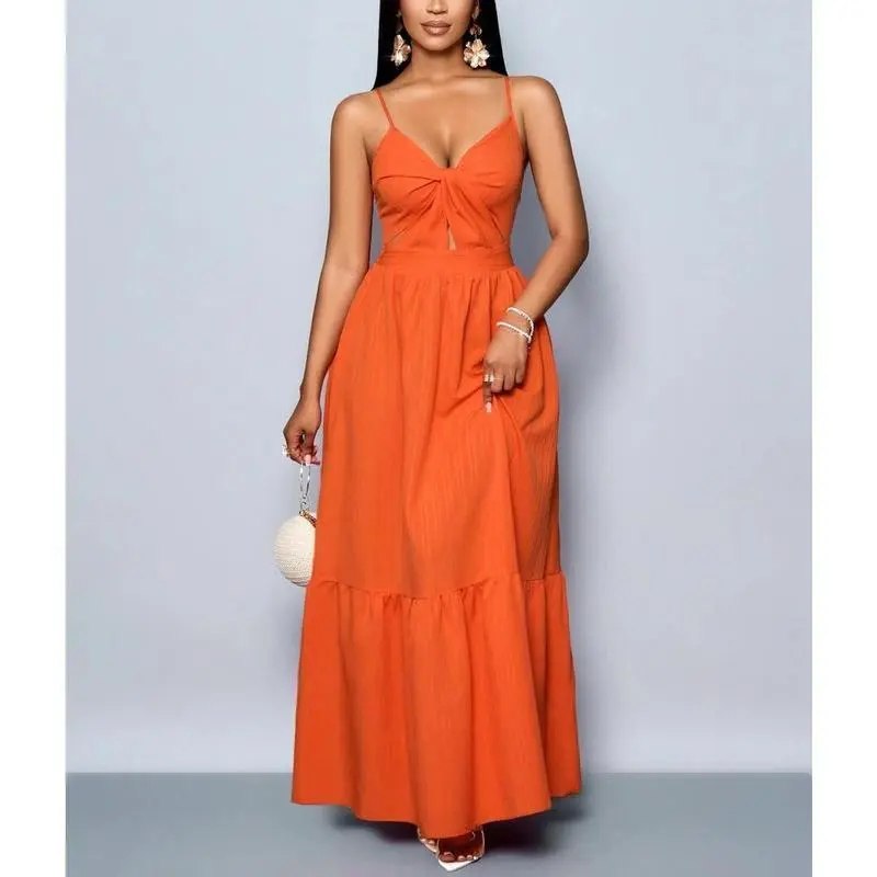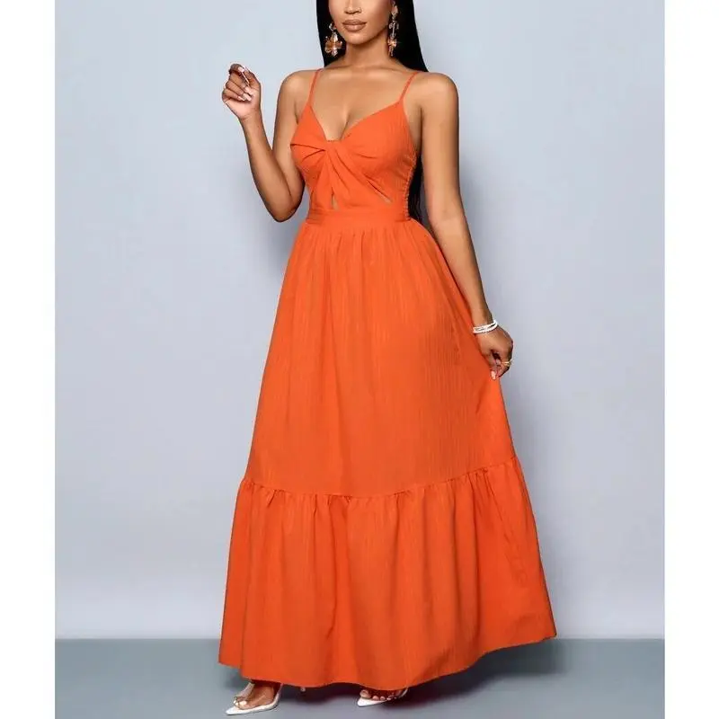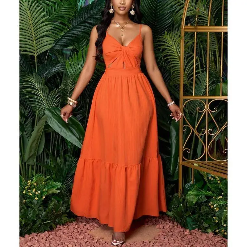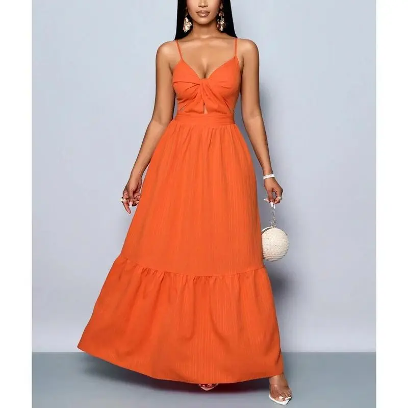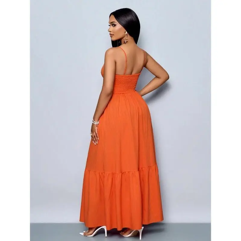 Neckline:Spaghetti Strap/Hem Shaped:Flounce/Waist Line:High Waist/Type:Cami/Details:Cut Out, Ruffle Hem, Twist/Lined For Added Warmth:No/Pattern Type:Plain/Body:Unlined/Color:Burnt Orange/Sleeve length: sleepveless/Fit Type:Slim Fit/Length:Long/Material:Fabric/Composition:98.0% Polyester, 2.0% Elastane/Care Instructions:Machine wash or professional dry clean/Sheer:No/Fabric:Non-Stretch/Women's Striped Back Smocked Maxi Dress Sexy Spaghetti Strap Cut Out Flowy Swing Long Dress/Channel Your Inner Island Goddess! 🌺🌊 Slay every sunset, beach party, and poolside moment in this breathtaking orange maxi dress! With its smocked striped back, flirty cut-outs, and flowy pleated skirt, this dress is your ticket to effortless vacation glam—whether you’re sipping coconuts in Hawaii or brunching in the city./WHY IT’S A TRAVEL ESSENTIAL 👇 ✅ MULTI-WAY MAGIC: Adjust the spaghetti straps, twist the ruffles, or tie the smocked waist—5+ ways to style for beach cover-ups, date nights, or Insta-worthy hikes! ✅ HEAD-TURNING DETAILS: Deep V-neck, cheeky back cut-outs, and a swingy silhouette that dances with every step. ✅ BEACH-TO-BAR FABRIC: Lightweight, crinkled viscose keeps you cool under the sun and chic under the stars. ✅ FLATTERS ALL CURVES: Smocked back + stretchy bodice hugs your shape without squeezing—size-inclusive magic!/STYLE IT FOR EVERY ADVENTURE: 🌴 Tropical getaway – Pair with sandals and a floppy hat for ”aloha vibes”. 🌅 Sunset dinner – Add strappy heels and layered necklaces for romance. 🛍️ Casual errands – Throw on a denim jacket + slides for laid-back cool./DETAILS:/🛒 SUMMER WON’T LAST FOREVER – GRAB YOURS BEFORE IT’S GONE! P.S. Tag @[Your Brand Name] in your vacay pics – we’ll repost the hottest looks! 📸/#BeachDressMagic #VacayOOTD #MultiWaySlay #SunsetChic #TikTokMadeMeBuyIt