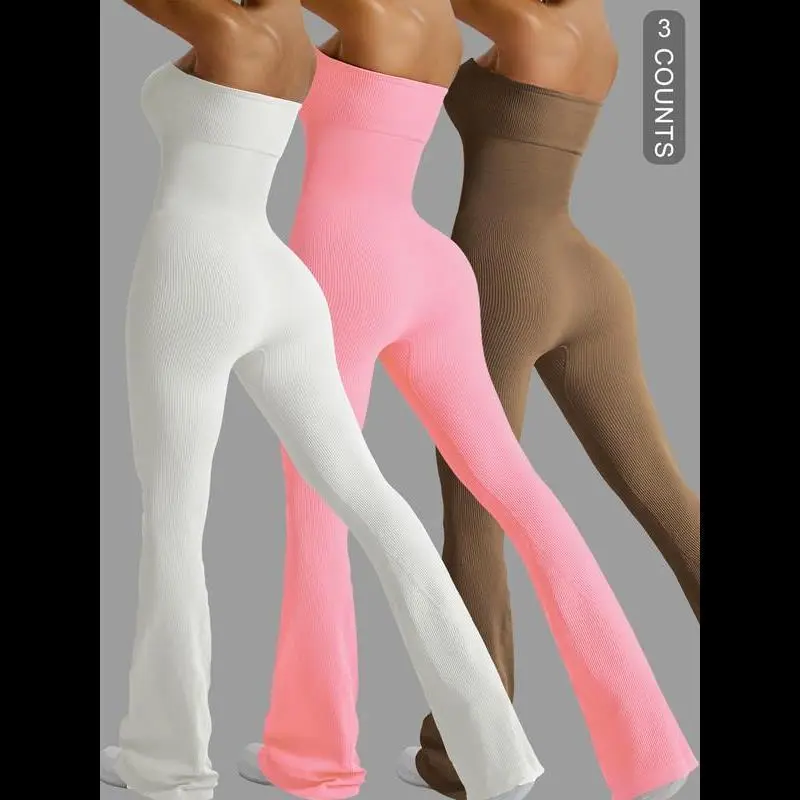 Women's Solid Bell Bottom Sports Tube Tummy Control Jumpsuit, Comfortable Bodysuit Shapewear, Sporty Ribbed Flared Leg Tube Jumpsuit for Yoga Gym Workout, Fall Jumpsuits for Women, Athletic Wear , Womenswear, Jumpsuits for Women