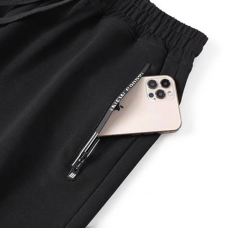 Mens Lightweight Spring Athletic Pants | Slim Fit Sweatpants with Zippered Pockets | Black, Grey, Dark Blue | Cuffed & Straight Leg Styles Available Joggers