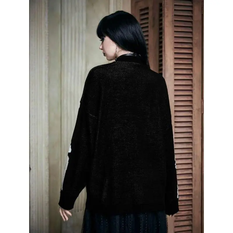 【Plus Size】 Halloween Skeleton Print Cardigan, Gothic Punk Casual Long Sleeve Open Front Knitwear for Fall & Winter, Women's Clothing for Daily Wear, Knitting Sweater Cardigan