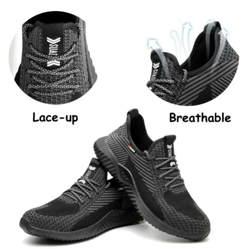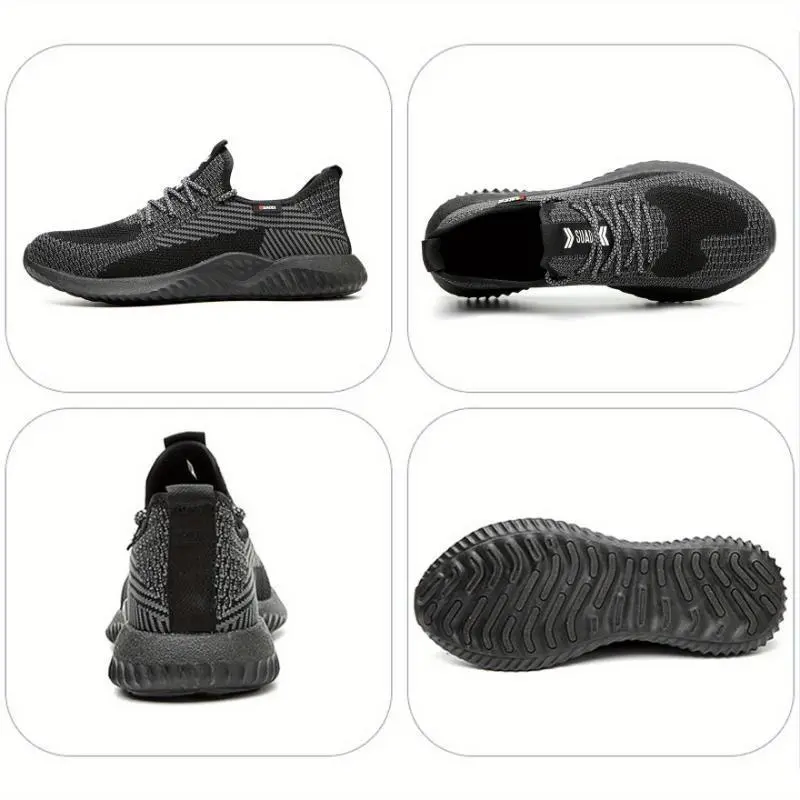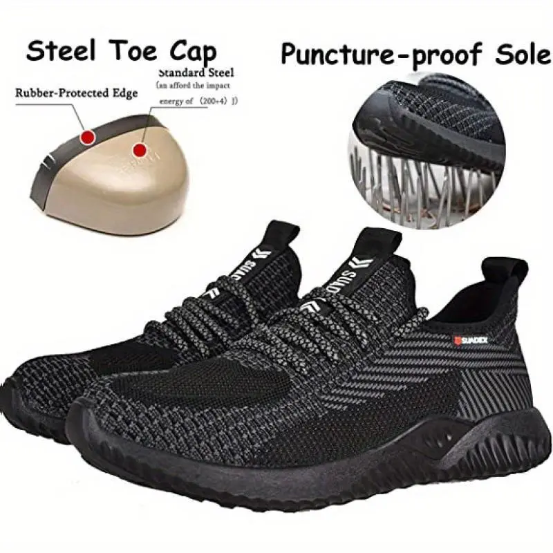 Steel Toe Shoes for Men Lightweight Work Shoes Construction Industrial Work Tennis Shoes Safety Shoes Comfortable Steel Toe Sneakers for Men Black Boy Closed Footwear steel toe shoes Worker Rubber