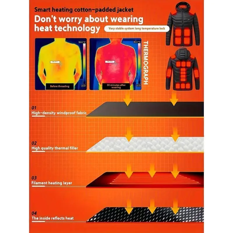 USB Powered Smart Heating Jacket Warm And Constant Temperature Electric Heating Jacket Suitable For Men And Women Zippered Hooded Style For Winter Daily Wear Office Commutes Coffee Runs Weekend Errands