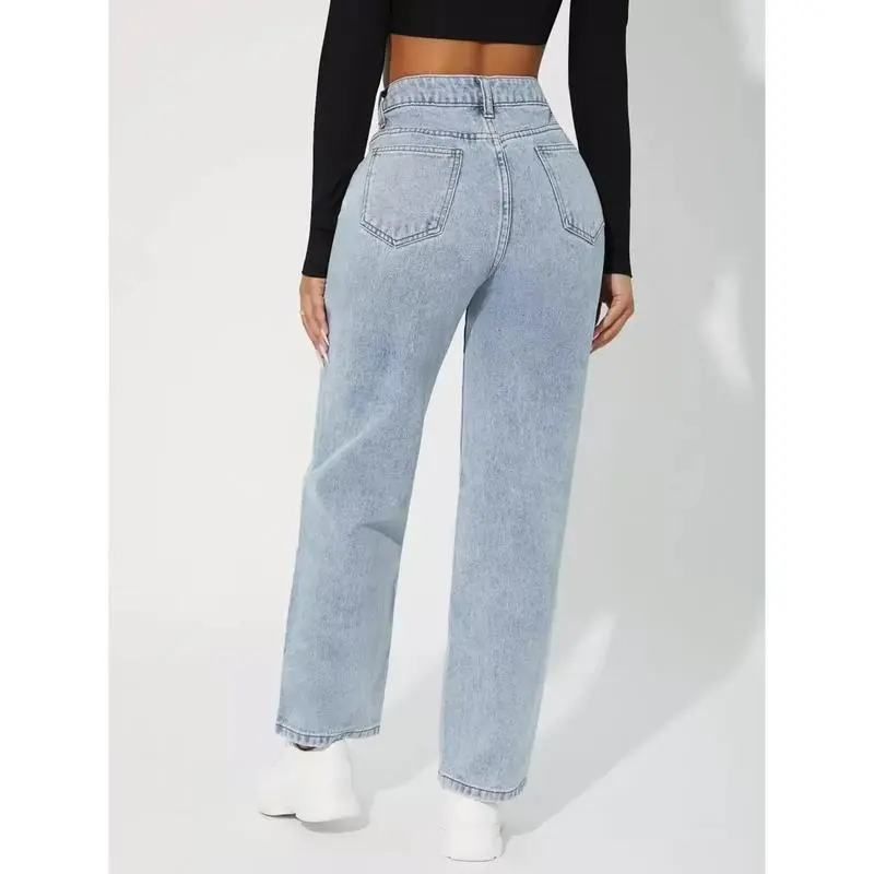 Features:Comfortable, Breathable, Soft, Skin-friendly Fabric Elasticity:Non-Stretch Details:Button, Pocket, Zipper, Washed Lined For Added Warmth:No Pattern Type:Plain Style:Casual Closure Type:Zipper Fly Body:Unlined Color:Light Wash Type:Straight Leg Jeans Style:Mom Fit Waist Line:High Waist Length:Long Fit Type:Regular Fit Material:Denim Composition:87% Cotton, 12% Polyester, 1% Viscose Care Instructions:Machine wash, do not dry clean Sheer:No .