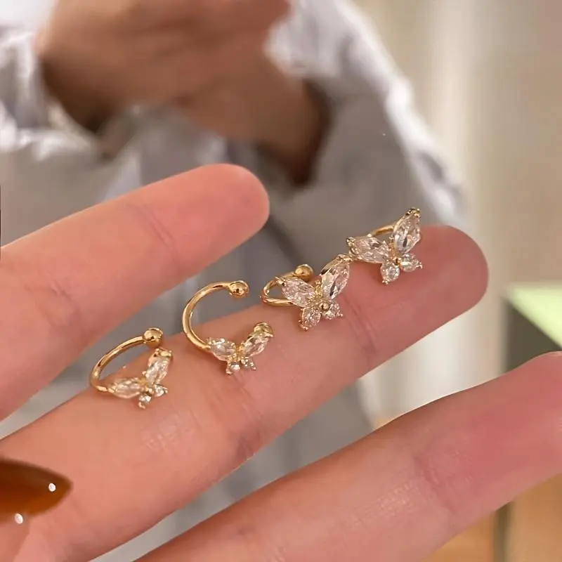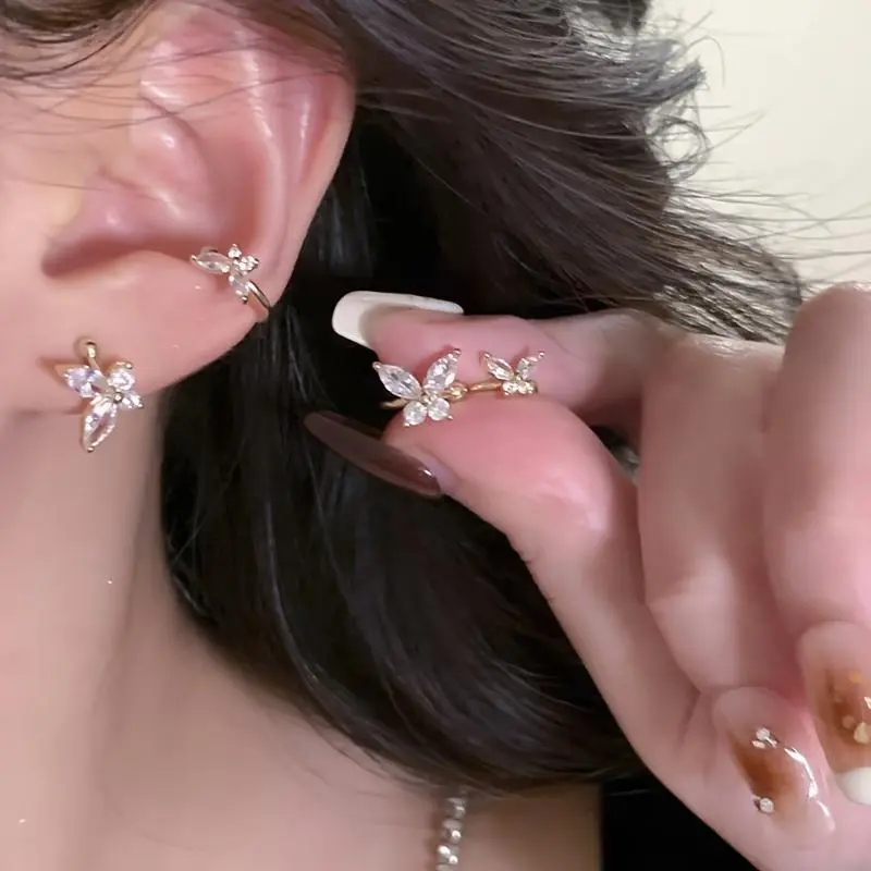 2pcs Fashionable And Elegant Delicate Zirconia Butterfly Ear Bone Clip No Need to Pierce No Ear Piercing Ear Bone Clip Earrings Ladies Valentine'S Day New Year'S Party Accessory Gift