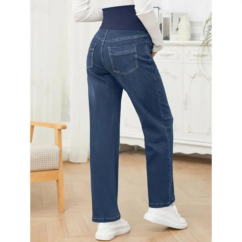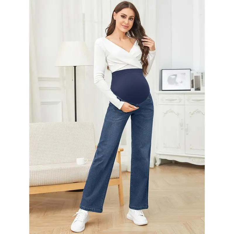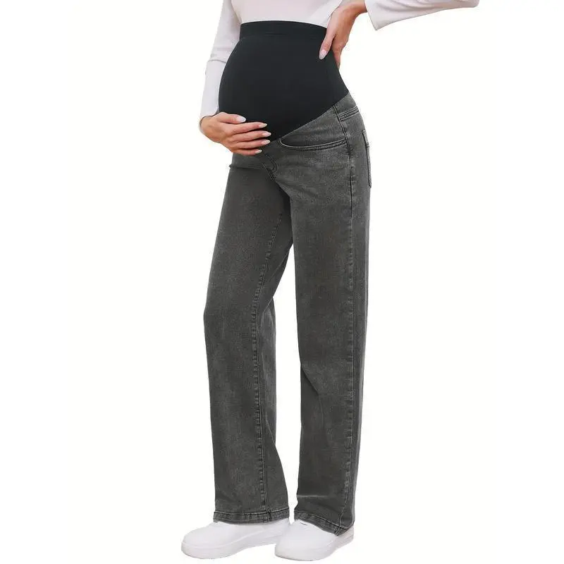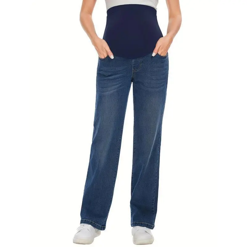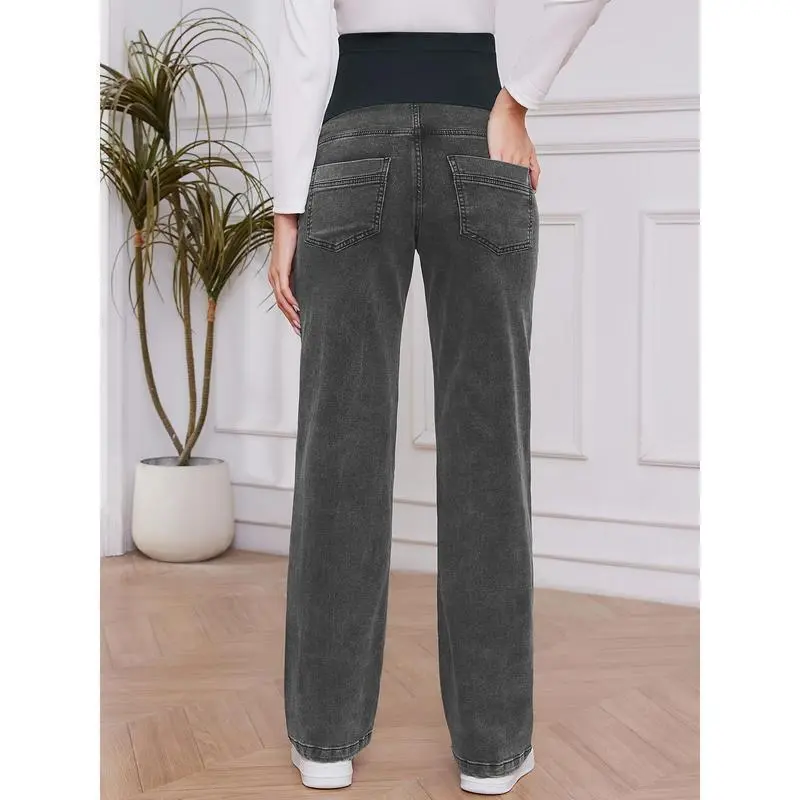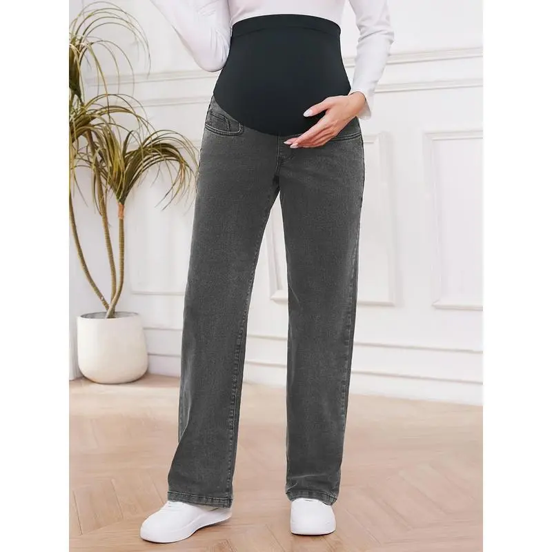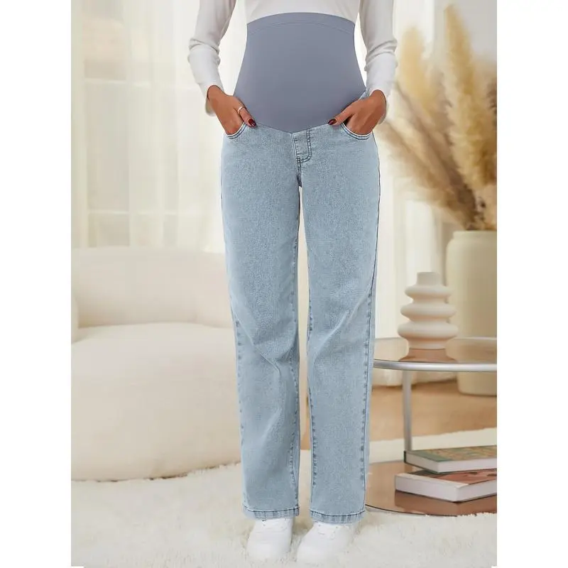 Women's Maternity Jeans, Straight, Loose Design, Abdomen, Pregnancy, Denim, Work Pants, Maternity Clothes, with Pockets No.151