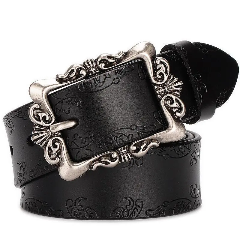 Women's Vintage Belt with Embossed Pin Buckle, Casual Mature Style, Average Size Fashion Belt Removable Western Cowboy Cowgirl