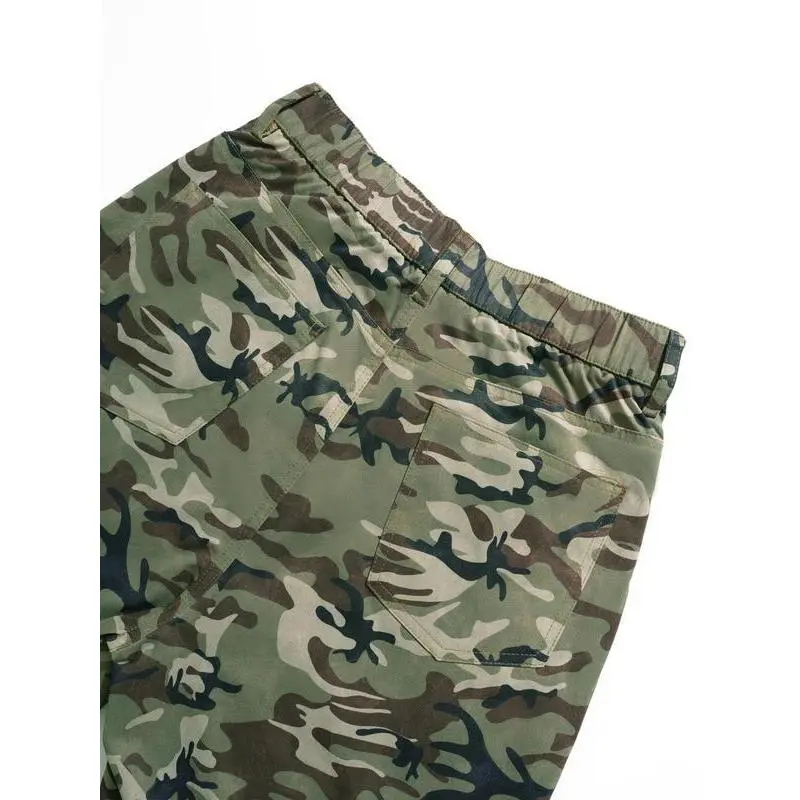 Women's Camo Print Pocket Cargo Pants, Casual Street Button Straight Leg Trousers for Daily Wear, Ladies Bottoms for All Seasons(gift) Womenswear Camouflage