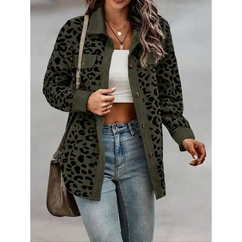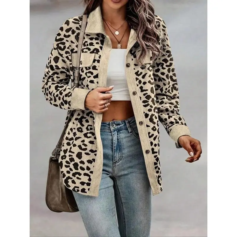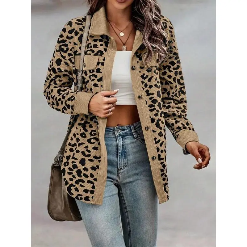 【Leopard Pattern】: The striking leopard print offers a bold statement, making this outerwear a perfect addition to your seasonal wardrobe. 【Button Front】: Features a functional button front, enhancing the coat’s usability while ensuring an effortless look for various occasions. 【Drop Shoulder】: The drop shoulder design provides a relaxed silhouette, allowing for greater arm mobility and a unique visual appeal. 【Machine Washable】: Designed for practicality, this coat’s materials are machine washable, providing easy care and maintenance for everyday wear. 【Fitted Structure】: Crafted for a fitted silhouette, this coat flatters your figure, ensuring a polished appearance alongside daily functionality.