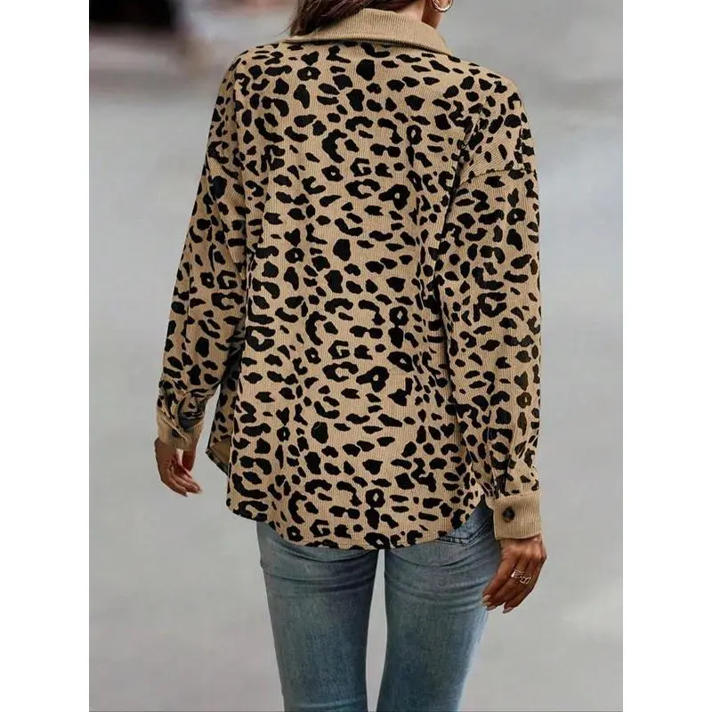Women's Leopard Print Button Front Drop Shoulder Coat, Casual Long Sleeve Collared Outerwear for Spring & Fall, Ladies Clothes for Daily Wear(gift) Womenswear Everyday