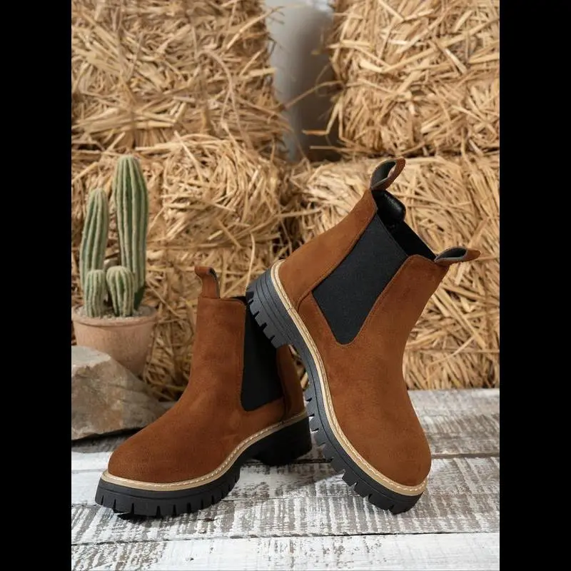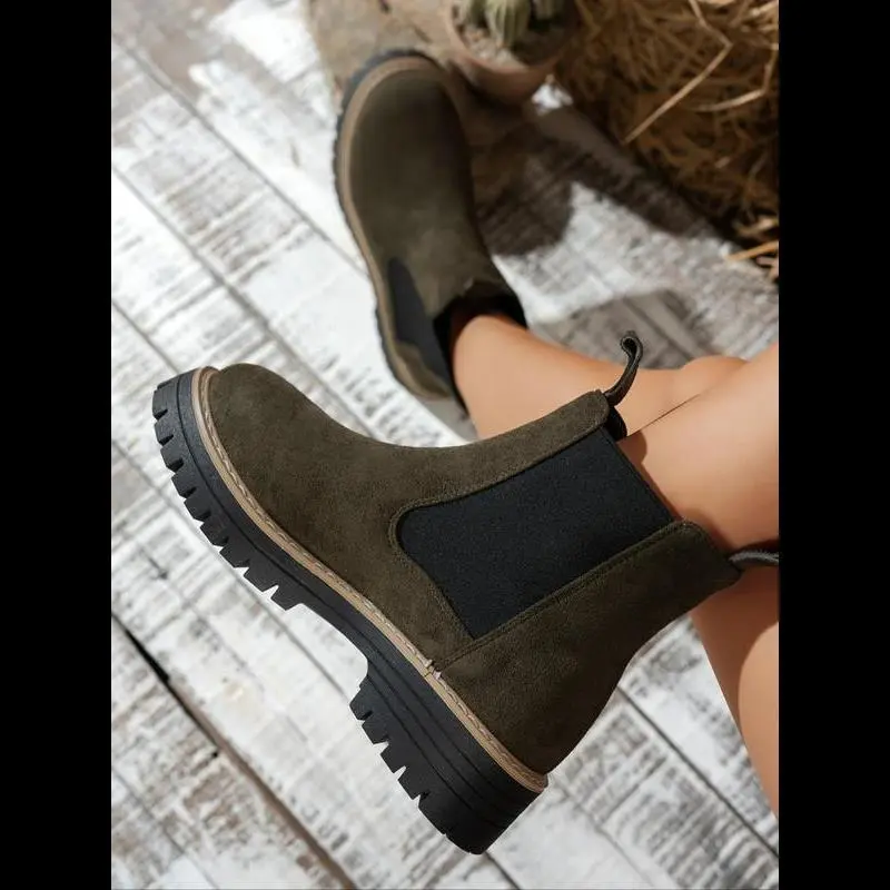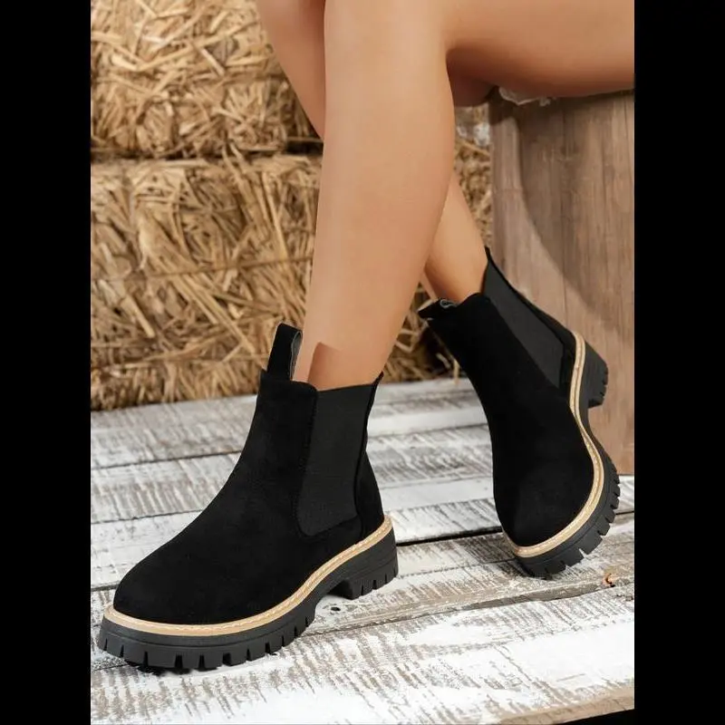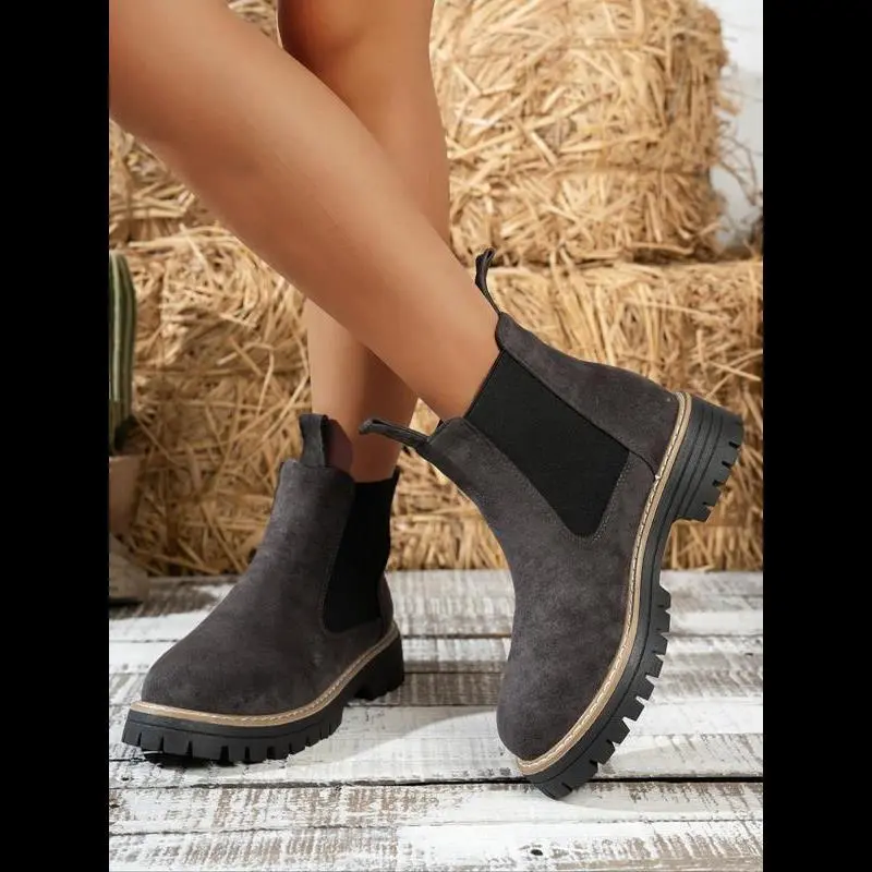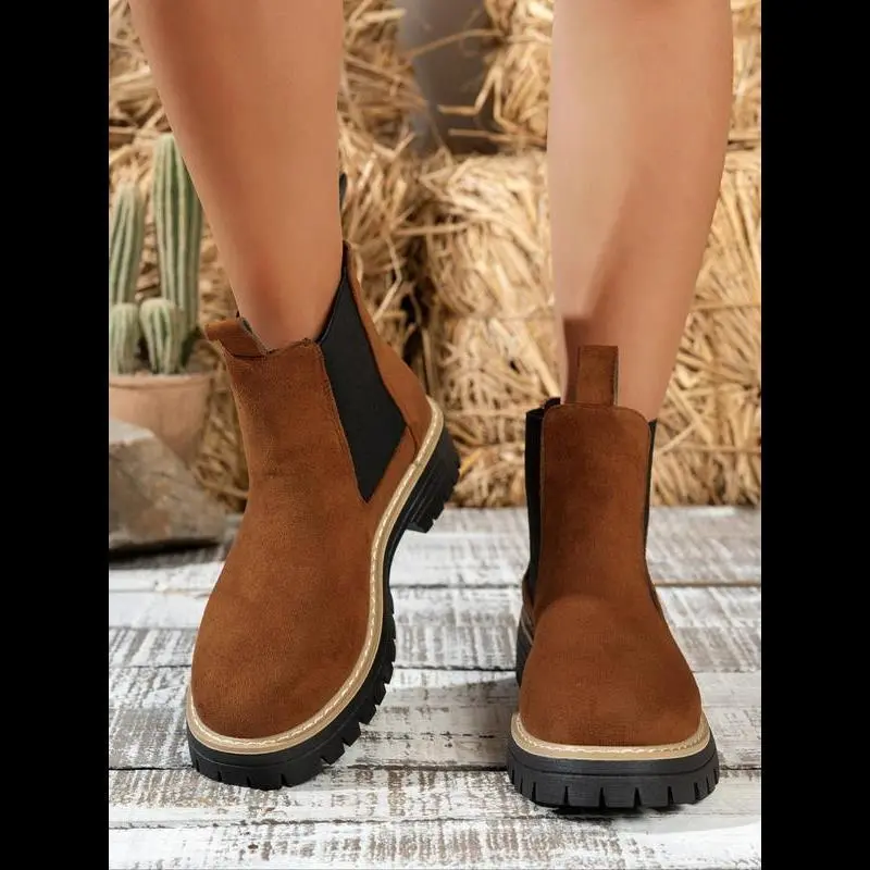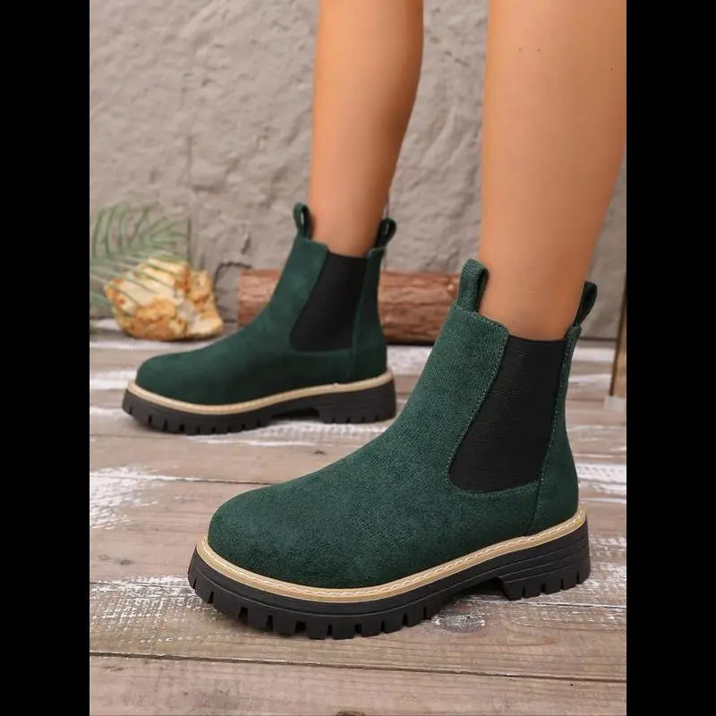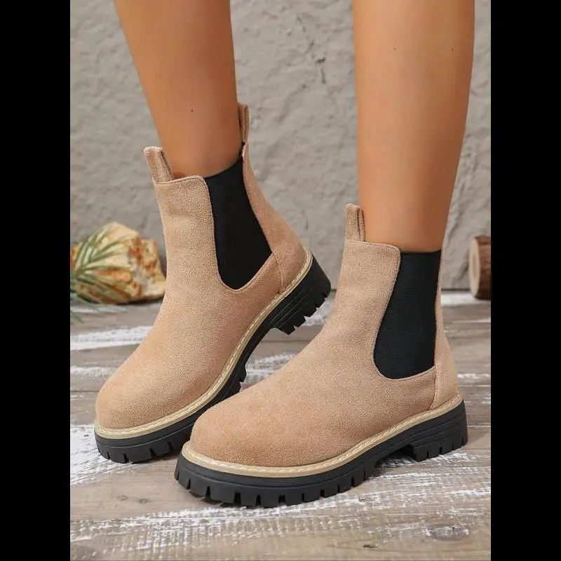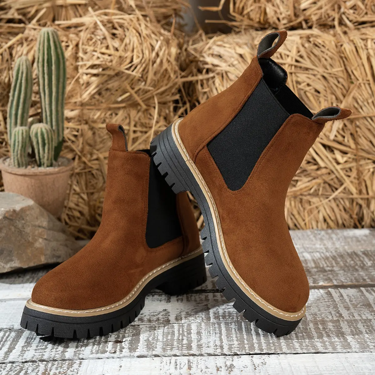 Women's Faux Suede Chelsea Boots, Fashion Slip-On Thick Sole Casual Short Boots, Warm Lining Anti-Slip Rubber Ankle Boots, Casual Outdoor Boot Girl Walking Shoes