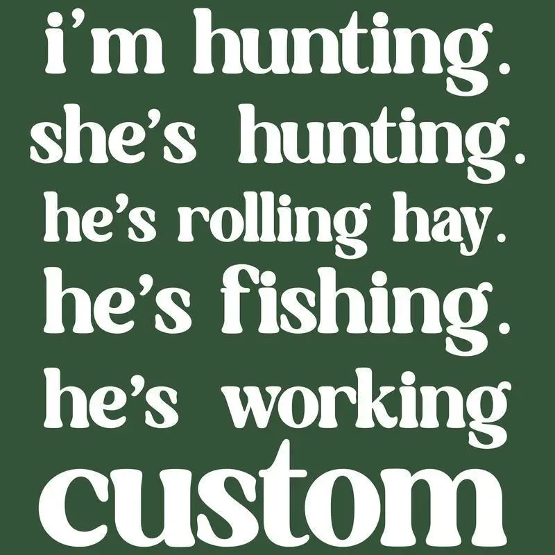 ?? Custom He's Hunting Sweatshirt ***** If you want to change the design to your liking, select: [Custom Text, please message] ? Show your love for hunting with humor and style. This unisex apparel is perfect for hunting season. Choose from T-shirts, sweatshirts, or hoodies made from 100% cotton or 50% cotton/50% polyester blends. Express your passion for hunting with a unique twist. ??? Personalization Options If you want to change the design to your liking, select: ?? Material & Quality Sweatshirt: 50% cotton, 50% polyester. Each piece offers comfort and durability. Digital printing ensures longevity and quality. Enjoy a 100% free replacement for our mistakes or damages. Customer errors like size, design, color, or address mistakes are non-returnable. ?? Customer Support Cancellations are possible within 1 hours of purchase but not once production starts. Contact us for any issues. Your satisfaction is vital! We appreciate your 5-star reviews. For issues, reach out for support before leaving a low rating. Thank you! Have a nice day.