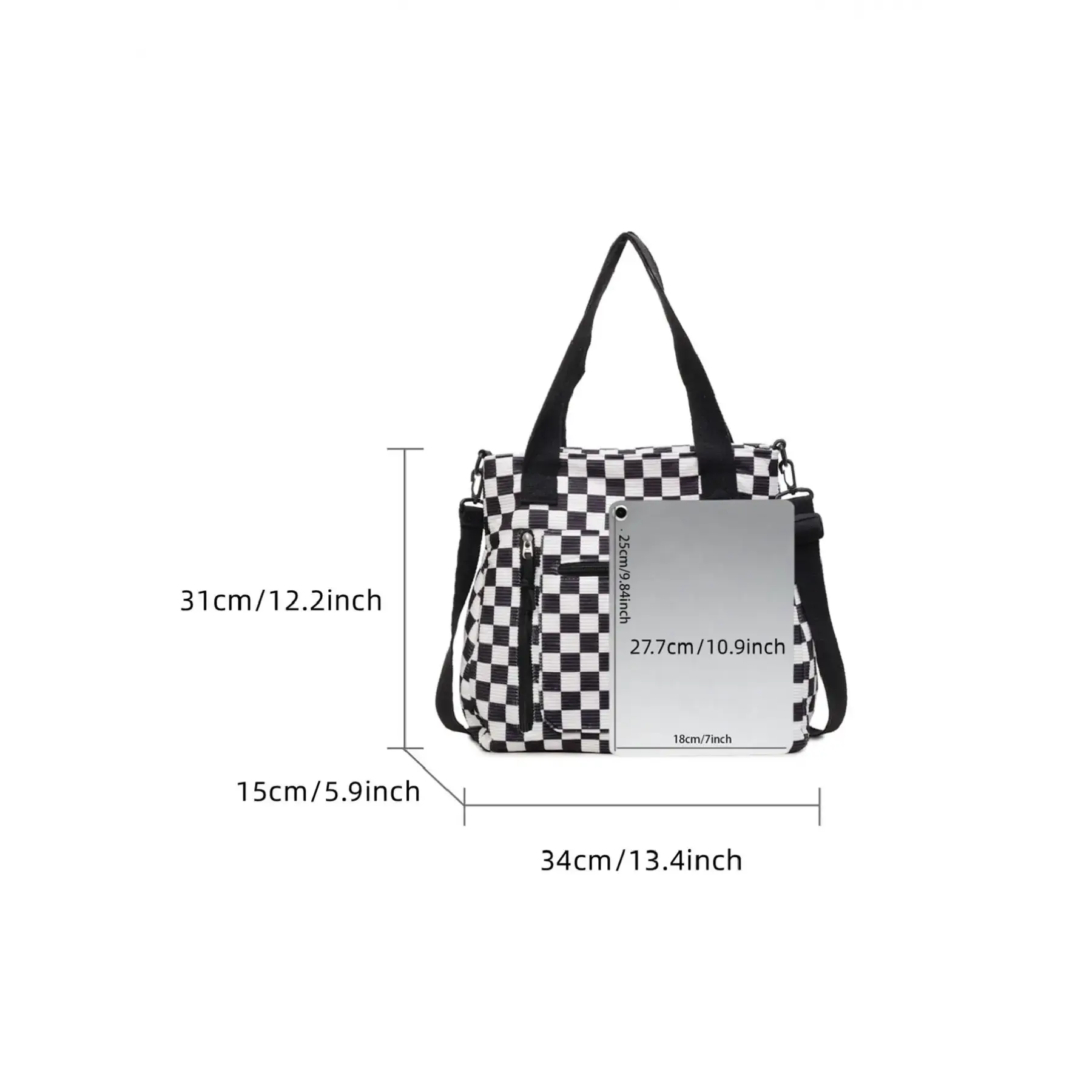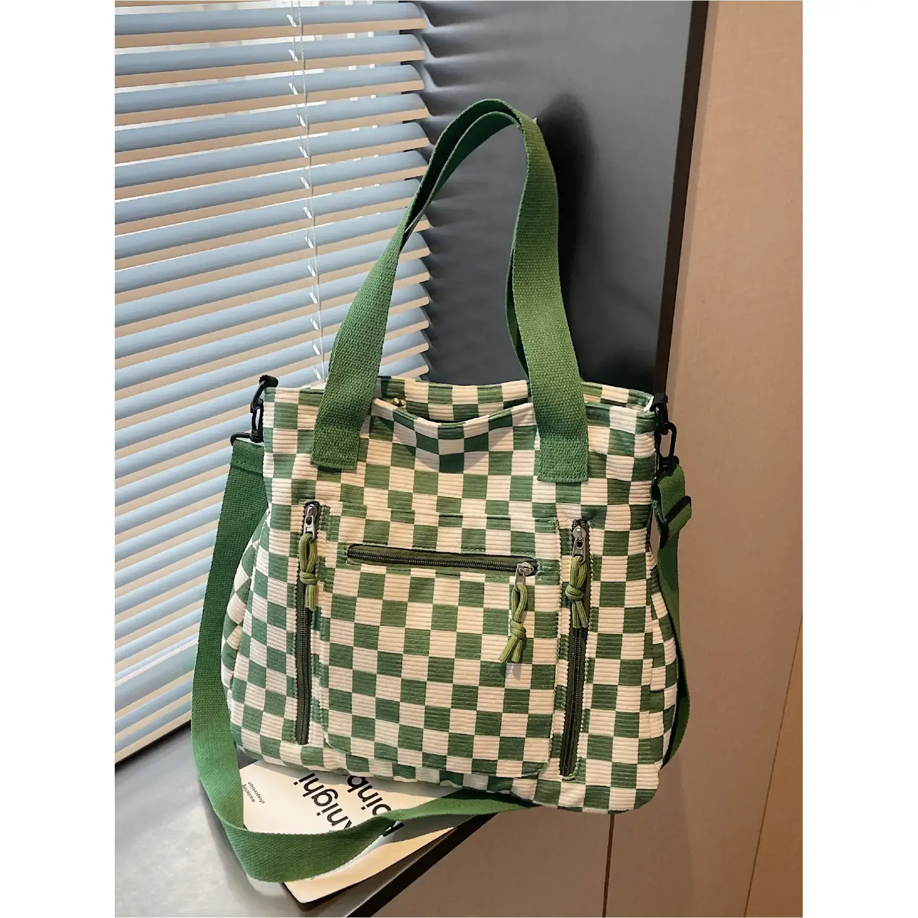 Large Capacity Women's Tote Bag, Colorblock Plaid Design, Simple Commuter Shoulder Bag, Multi-Pocket, Checked Pattern Tote, Versatile and StylishGift