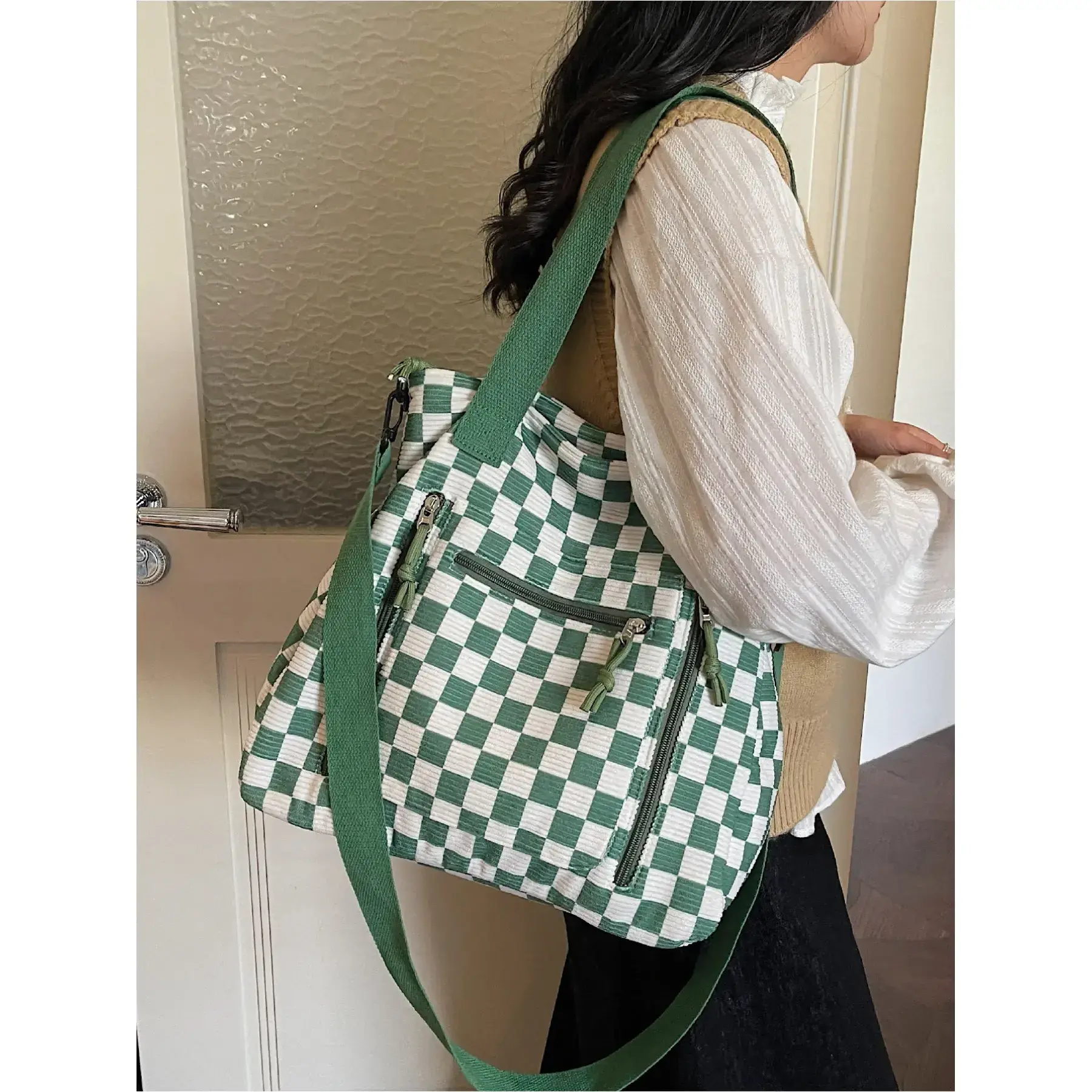 Large Capacity Women's Tote Bag, Colorblock Plaid Design, Simple Commuter Shoulder Bag, Multi-Pocket, Checked Pattern Tote, Versatile and Stylish