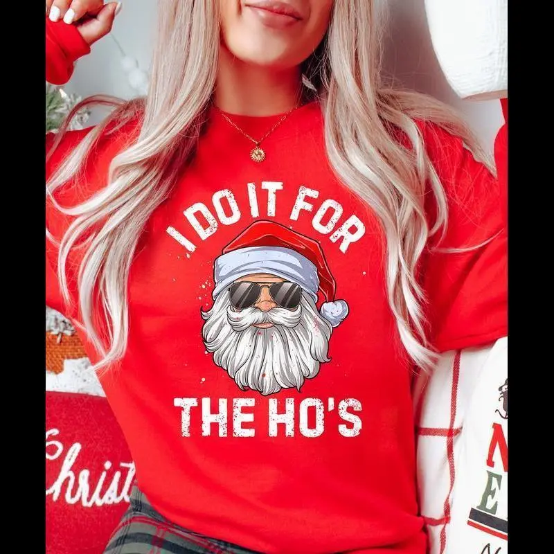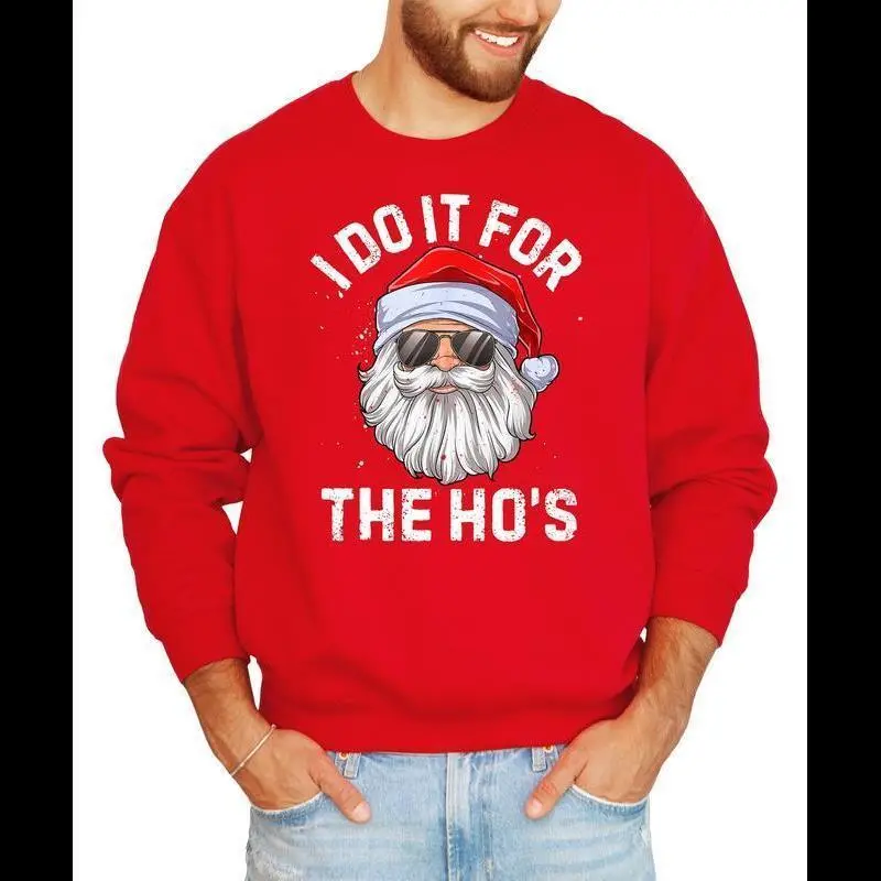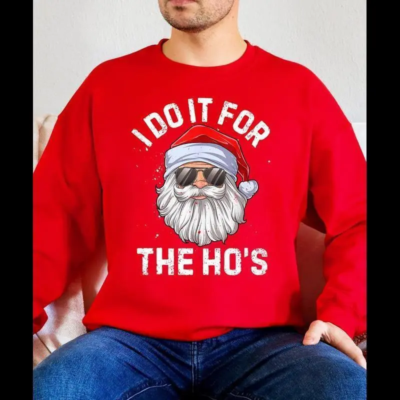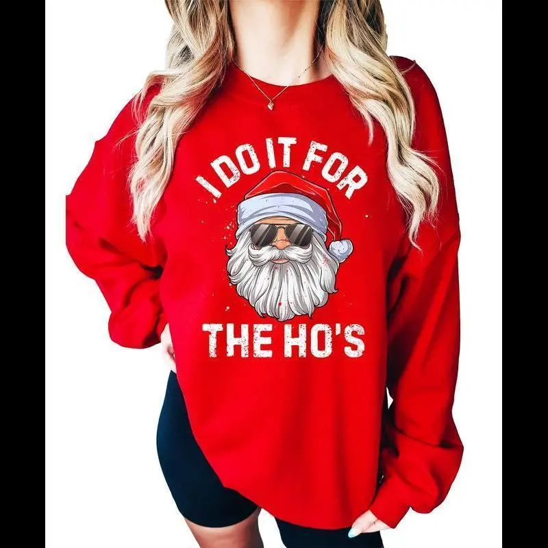 This "I do it for the Ho's" sweatshirt is a perfect choice for both women and men, adding a touch of humor to your Christmas wardrobe./The long sleeve design makes it suitable for the winter season, while the loose-fitting cut ensures comfort all day long. Whether you're celebrating Christmas or just want to spread some holiday cheer, this sweatshirt is a festive choice!