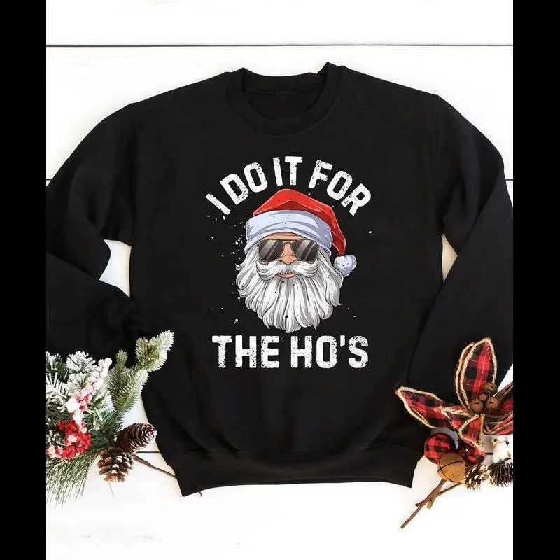 I do it for the Ho's Sweatshirt for Women and Men - Funny Christmas Sweater for Adults - Cool Santa in Sunglasses Pullover