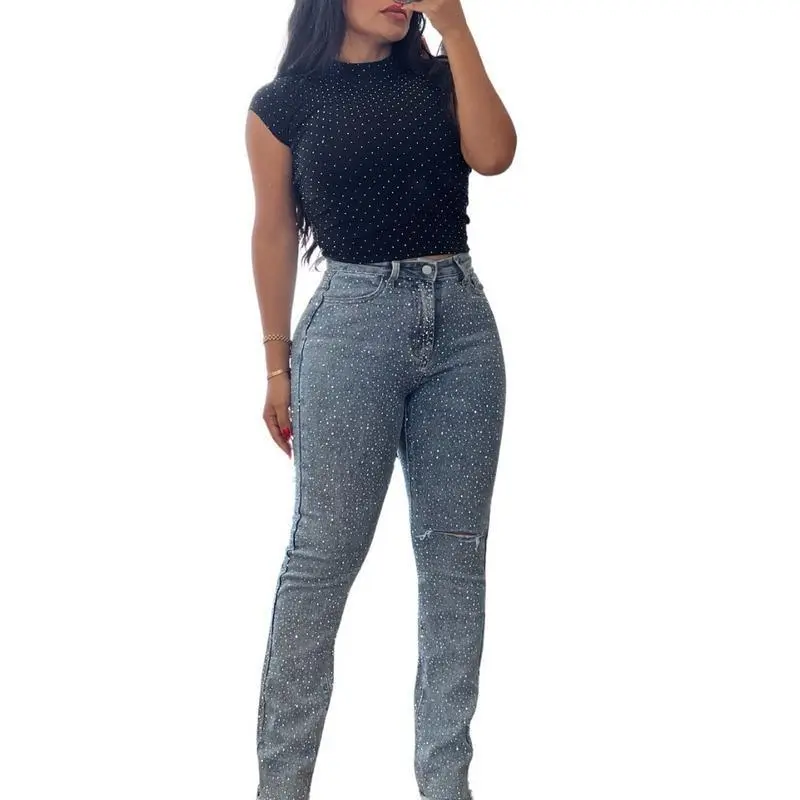 FernandaFullRhinestoneDenimPantsNOSTRETCHRippedSkinnyFitWomen'sBottomsStreetwearAllSeasonsJeans Womenswear Trouser
