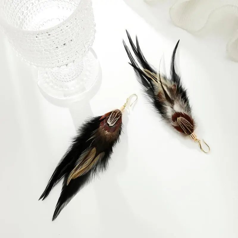 Bohemian Style Multicolor Pheasant Feathers Dangle Earrings Large Feather Drop Earrings(er006405)