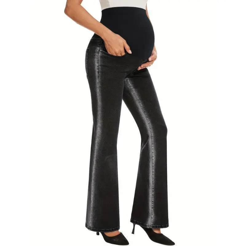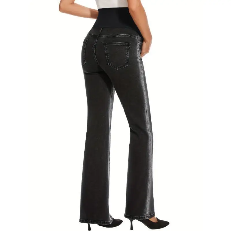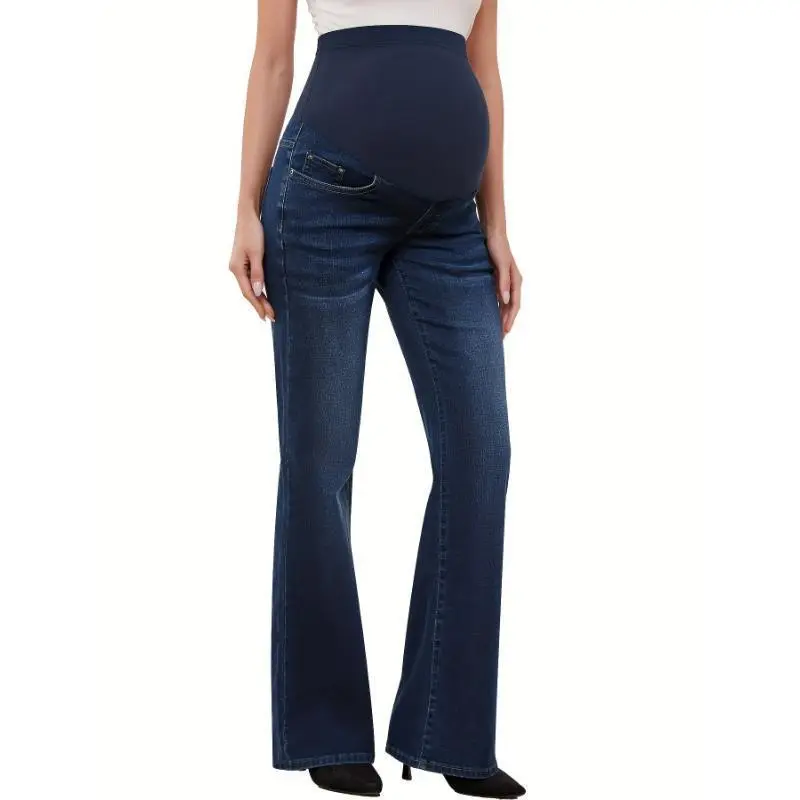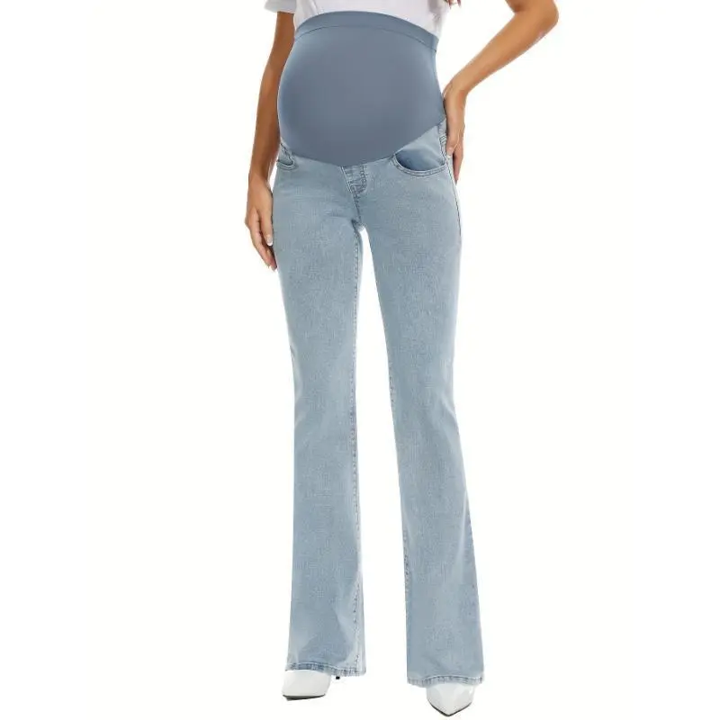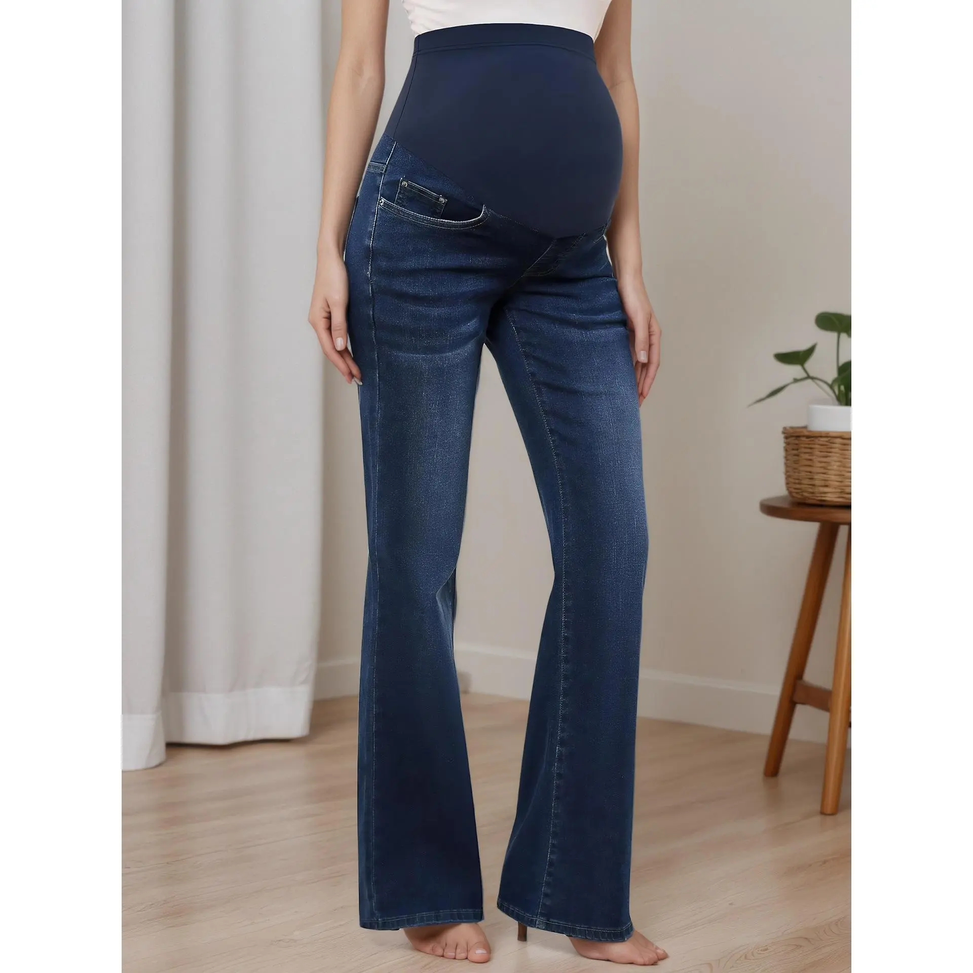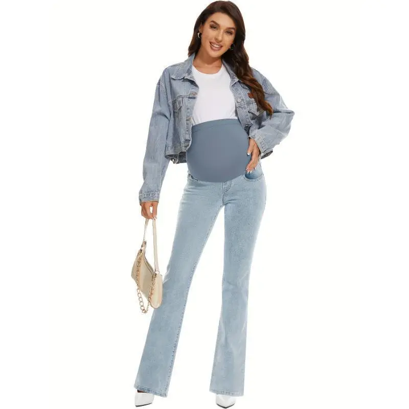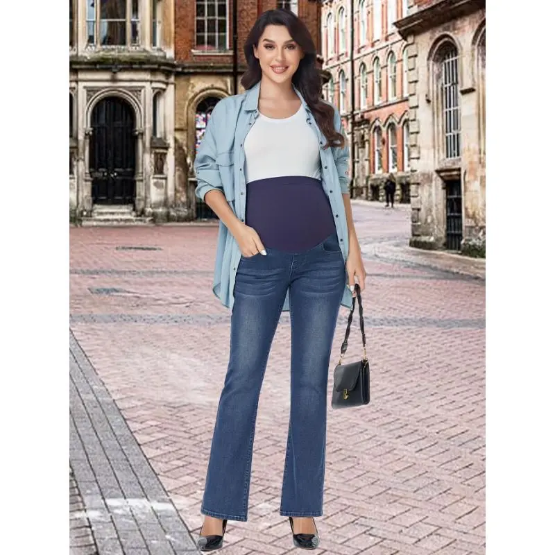 Women'S Stretch Maternity Bootcut Jeans With Pockets Over The Belly Bell Bottoms Flare Denim Pants Pregnancy Clothes Can be used with raincoat