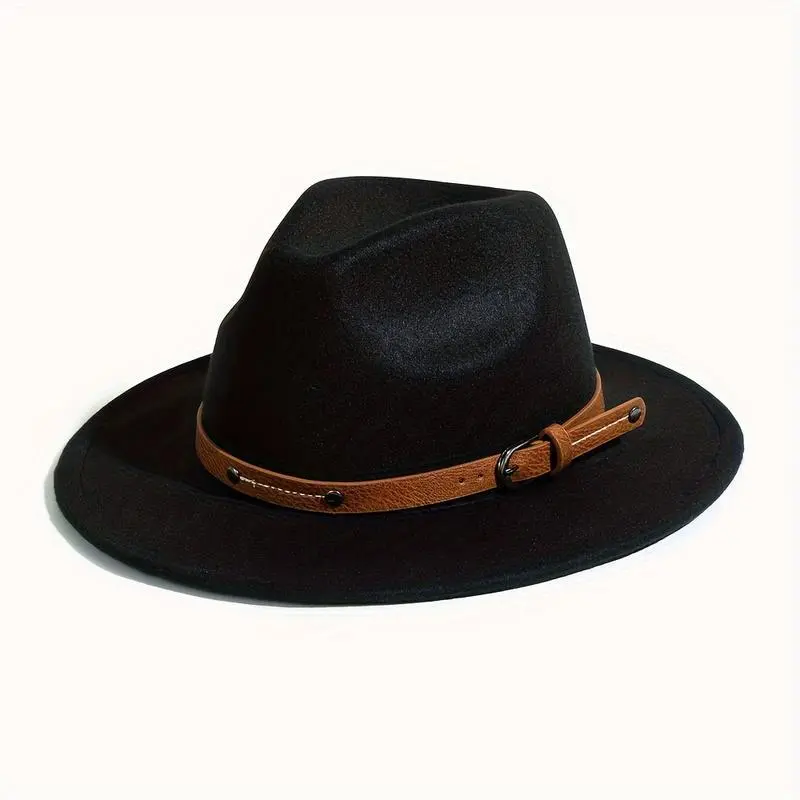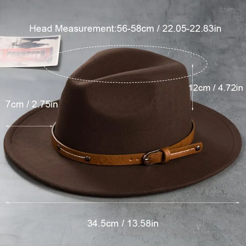 Unisex Wide Brim Fedora with Detachable Belt Buckle, Vintage Style Tricorne, Fashion Accessories for Men and Women in Multiple Colors silverbelly felt hat
