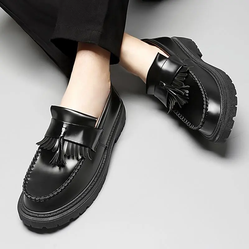 Classic Black Tassel Penny Loafers for Couples ✨ Elevate Your Style with Comfort ✨ These Classic Black Tassel Penny Loafers are perfect for couples seeking comfortable business casual shoes. Featuring a cork insole and durable PU cover, these loafers offer all-season wear. The chunky heel design and rounded toe ensure comfort throughout the day. 🌟 Dressy and Comfortable These loafers are not only stylish but also comfortable. The tassel detail adds a touch of elegance. Ideal for business casual occasions, these shoes are a versatile addition to your wardrobe. 🎨