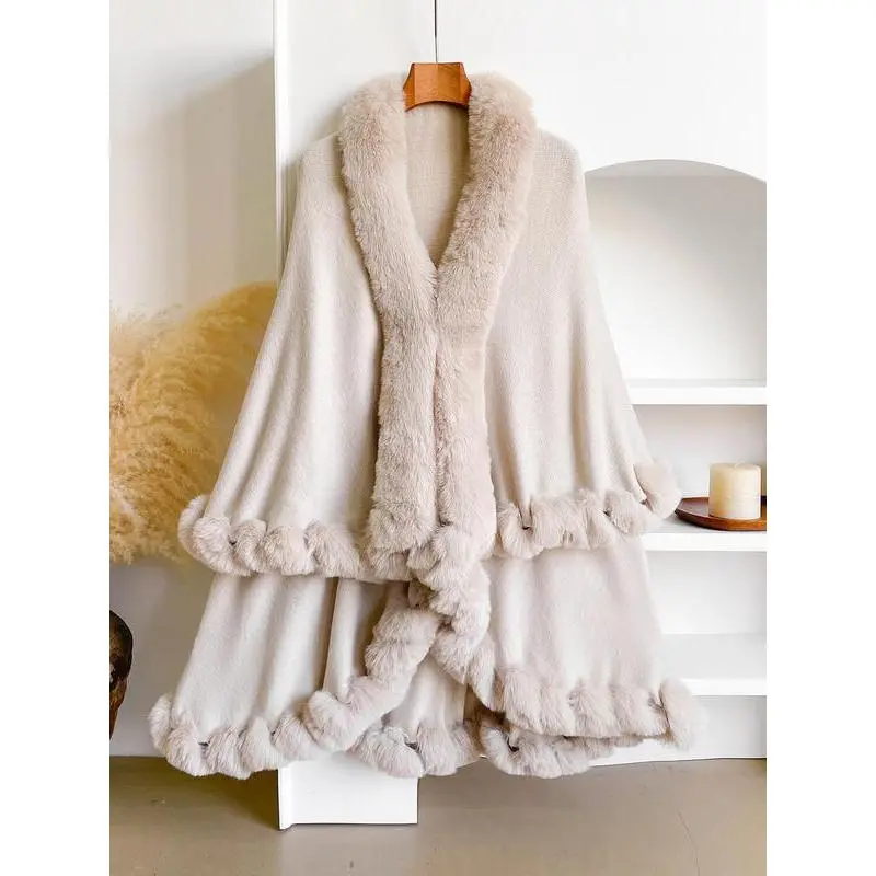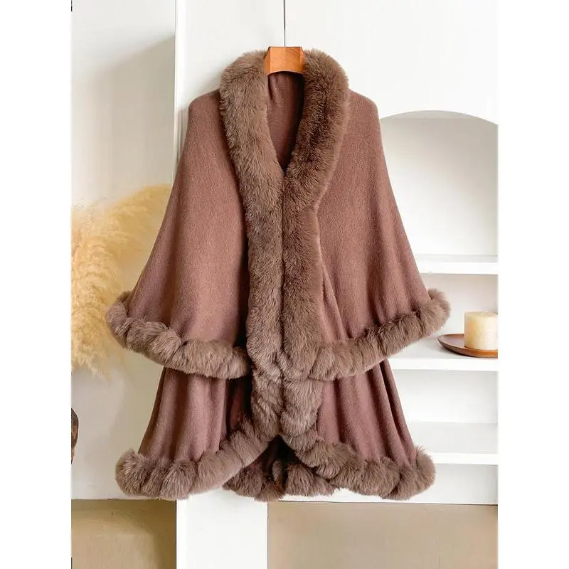 Women's Elegant Faux Fur Shawl Wrap, Ideal for Air-Conditioned Rooms, Warm and Comfortable for Home and Parties, Fall & Winter Fashion, Soft Warm Shawl