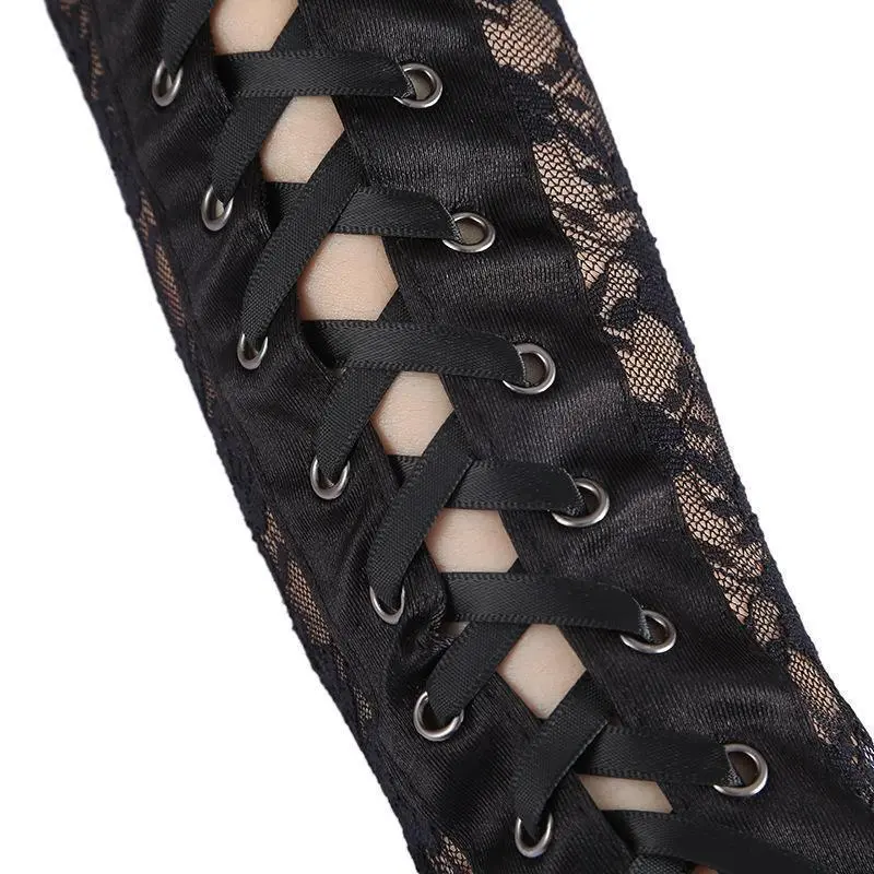 Womens Elbow Length Punk Fingerless Arm Warmer Goth Black Cosplay Accessories Fishnet Mesh Party Black Gloves Lace