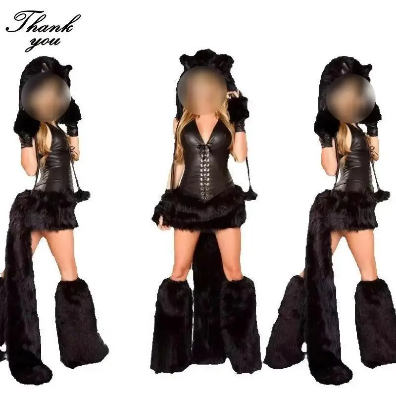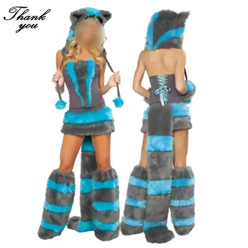 Sexy Plush Costume Set for Women with Big Tails Wolves Leopards Penguins Frogs Caterpillars Role-Playing Winter Halloween Cotton Material