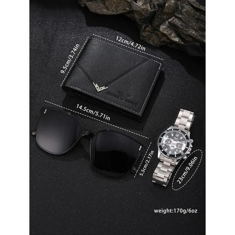 Men'sBusinessRoundDialAnalogQuartzWatch&JewelrySet,IncludingWatch&Sunglasses&Wallet,FashionWatchSetforParty,DailyDecor,ExquisiteWatchSetforGift