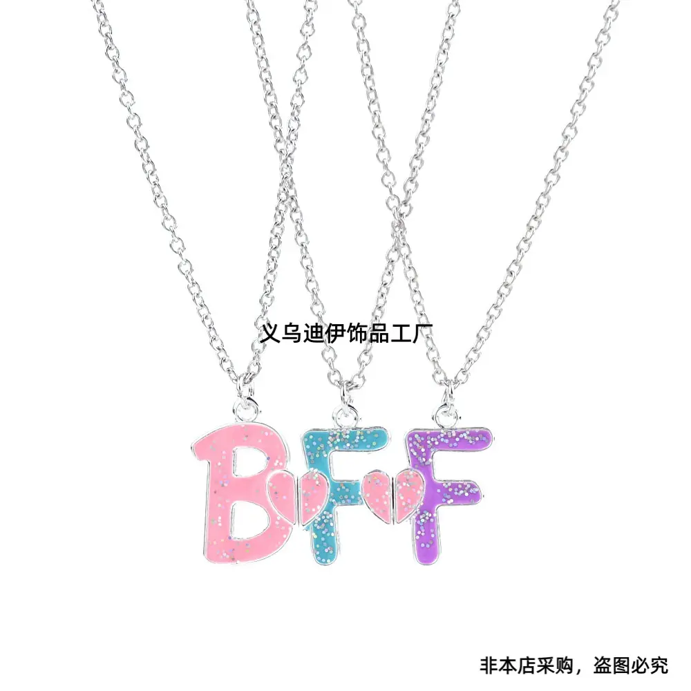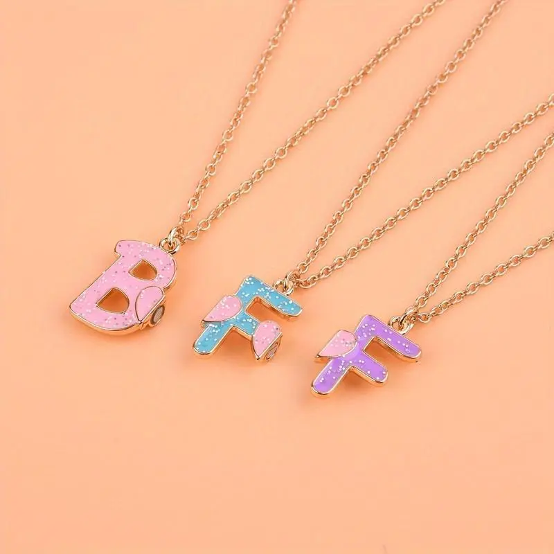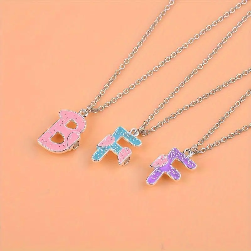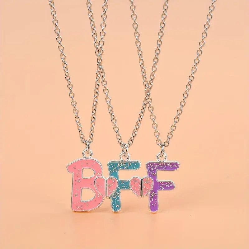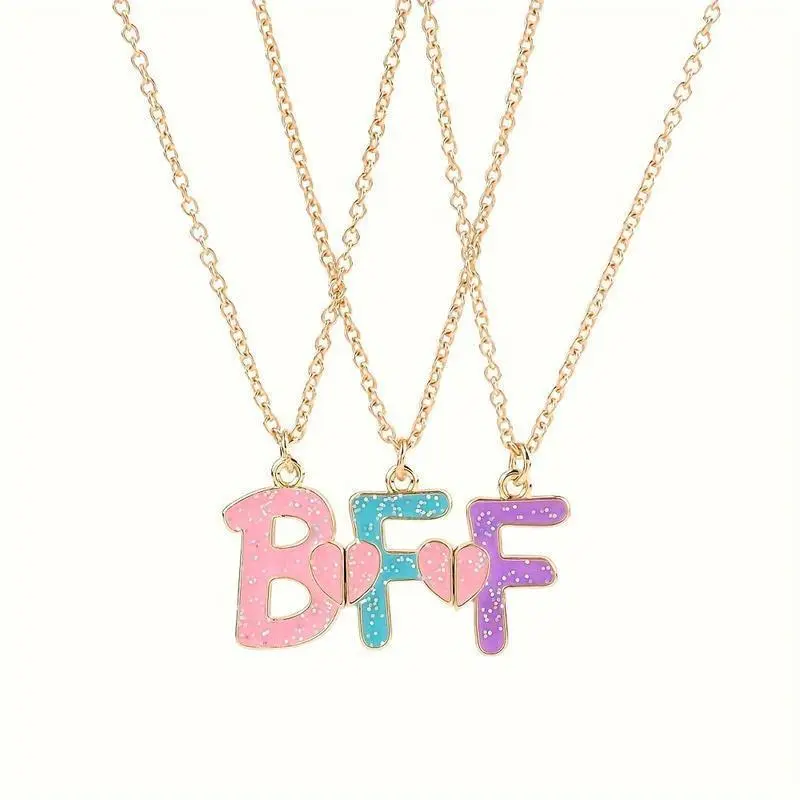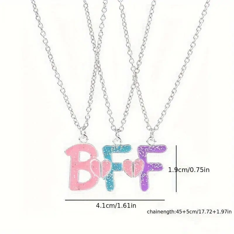3pcs BFF Heart Pendant Necklace Set - Fashionable Alloy Friendship Jewelry for Girls, Mixed Colors