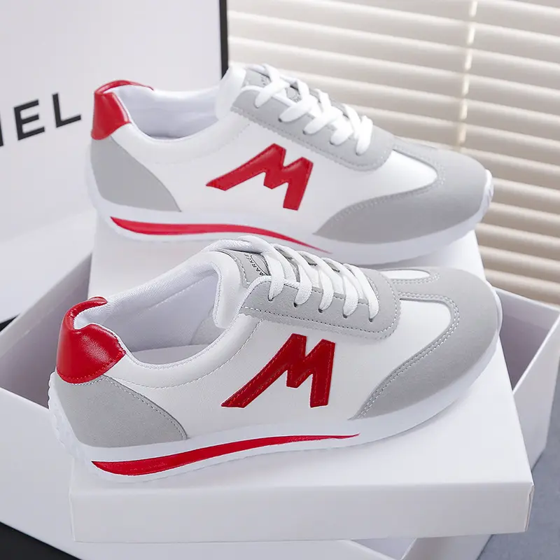 Women's Lightweight Casual Sports Shoes Fashionable White with Black Red Yellow Green Navy Blue Accents EVA Sole Running Shoes Lace Up Low Top Design Suitable for All Seasons Daily Running Workouts Walking Stylish Comfortable Footwear