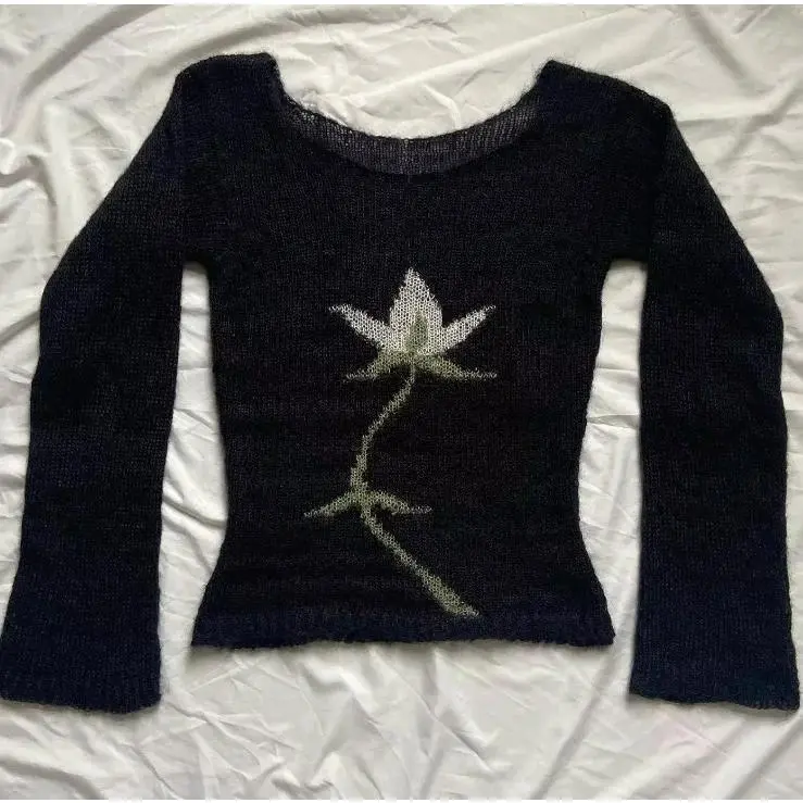Knitted Embroidered Bear Heavy Craft Woven Flower Round Neck Long Sleeve Pullover Loose Fit Halloween Women's Graphic Knit Sweatshirt with Hood Scoop Neck Lace Crop Camisole Sleeveless Solid Crew Neck Crop Top lady clothes hoodie white Knitwear Womenswear