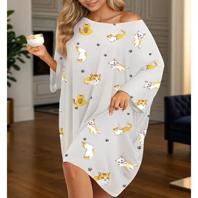 Shipping: Expedited generally sent within two days, customers will receive the product faster!/One size fits most(Fit S-5XL): Plus size nightgowns measure in at a generous and roomy 95cm long and 170cm wide (total circumference).Knee length makes this gown more inclusive, without worrying about not being able to wrap your torso.The loose-fitting elastic design also suitable for any period of pregancy./Get the ultimate night's snooze in your new women's nightgown.Made from a dreamy blend of soft stretchy bamboo & elastane it’s so comfortable that once you put it on you’ll want to live in it./Women's nightshirt is made from a unique combination of bamboo fiber and elastane: Not only is this material cuddly-soft and breathable, but it also keeps you cool and comfortable./Wear your Sleep Tee how you want: Designed for napping, chilling out on the couch, snuggling up for a movie, and everything in between.Two handy side pockets: perfect for storing your phone, yummy snacks or to hide your hands./Machine washable: Won’t fade or pill.Cute Night t-shirt dress for women comes in a wide range of colors and adorable prints.Suitable for sleep wear/lounge wear/nightgown/houes dress/casual wear/maternity wear, perfect gift for mother, wife, girlfriend, sister.