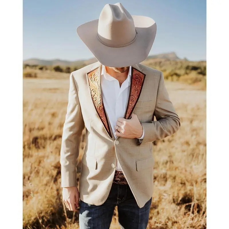 Men's Slim Fit Casual Blazer Western Cowboy Style Denim Jacket for Streetwear Menswear Suit Formal Long Sleeve Beige Midi Operator Biker business casual outfits office work clothes Soft Plain