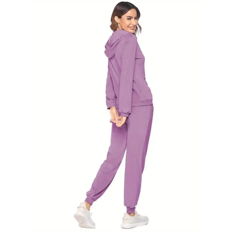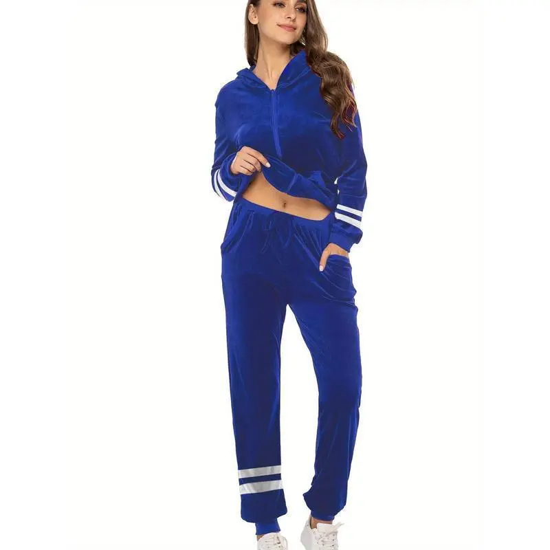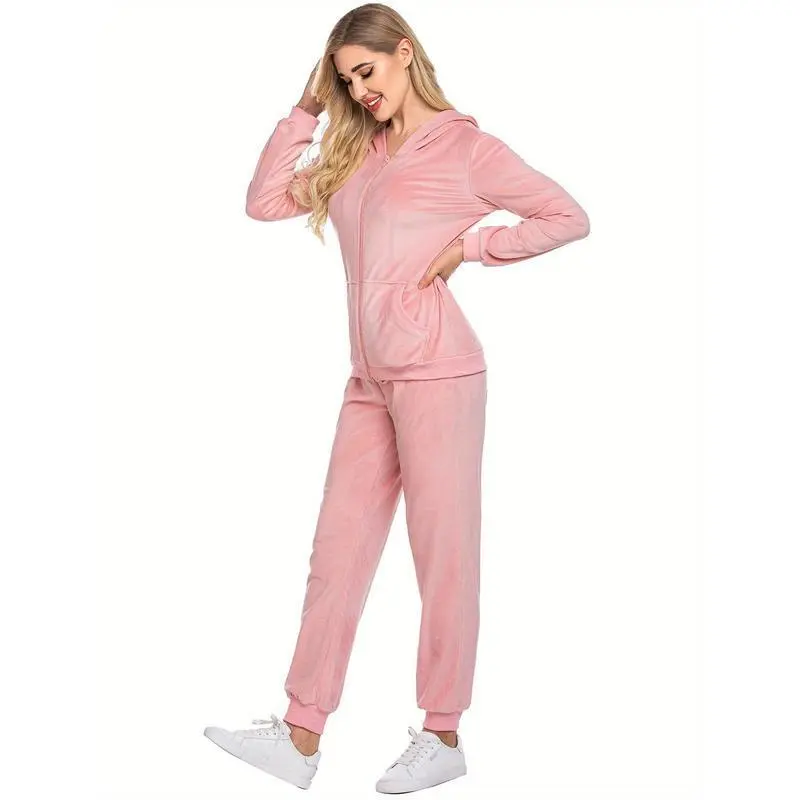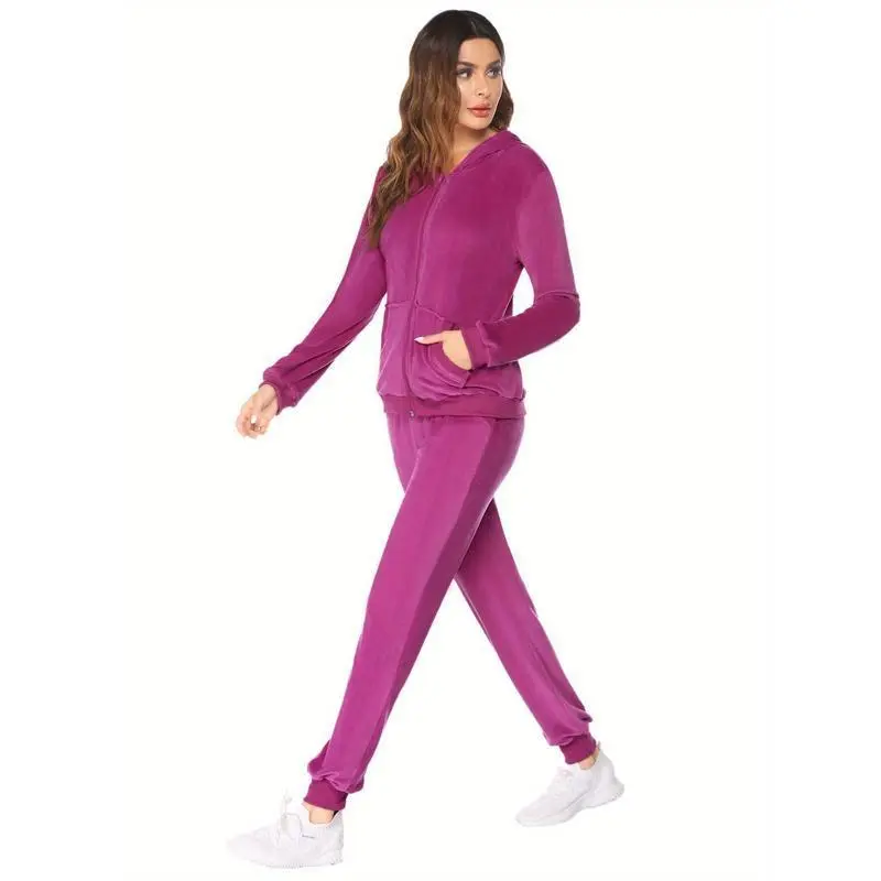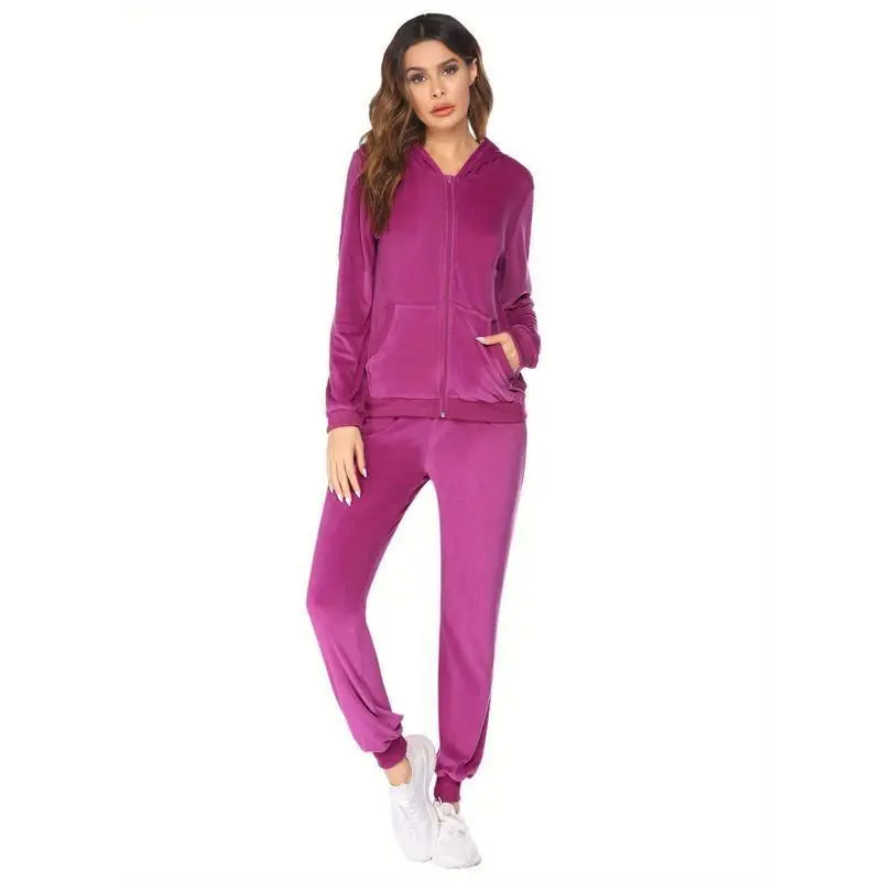 Womens Casual Velvet Tracksuit Set Full Zipper Hoodie Long Workout Pants Tracksuit Jogging Suits