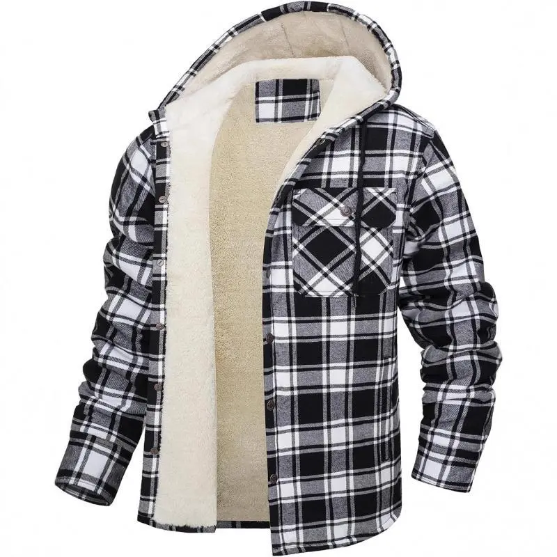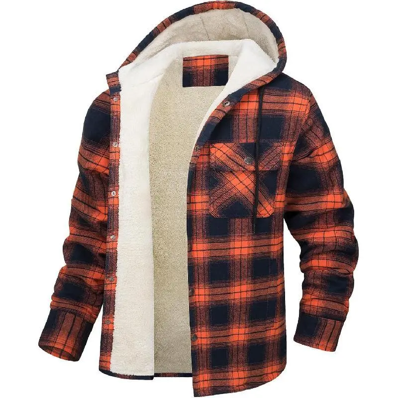 Men's Jacket 2025 New Style Men's Long Sleeve Hoodie with Fleece Checkered Print Men's Coat Fabric name: Hemp blend Main fabric composition: Polyester fiber (polyester) Content of main fabric components: 100% Ingredients: Polyester fiber (polyester) Ingredient content of the lining: 100% Applicable scenario: Leisure Colors: burgundy grid, navy blue grid, orange grid, navy blue grid, khaki grid, black and white grid, green grid, gray grid Heavy Thick Warm Checked Hoodies Mens Full Zip Plaid Flannel Jacket Sherpa Lined Plaid Hoodies