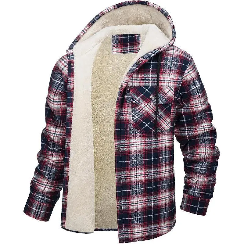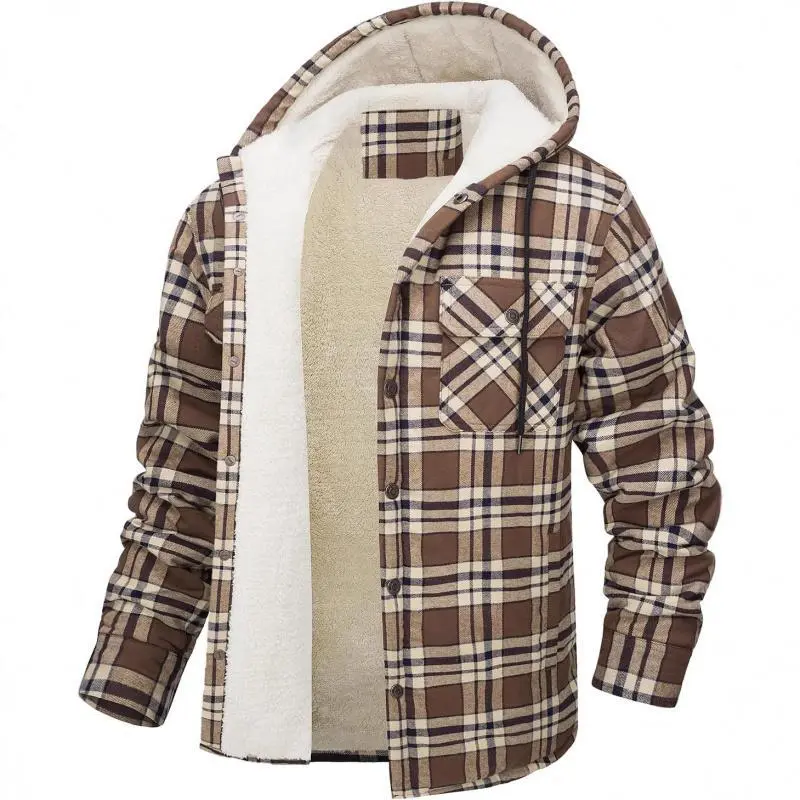 Heavy Thick Warm Checked Hoodies Mens Full Zip Plaid Flannel Jacket Sherpa Lined Plaid Hoodies