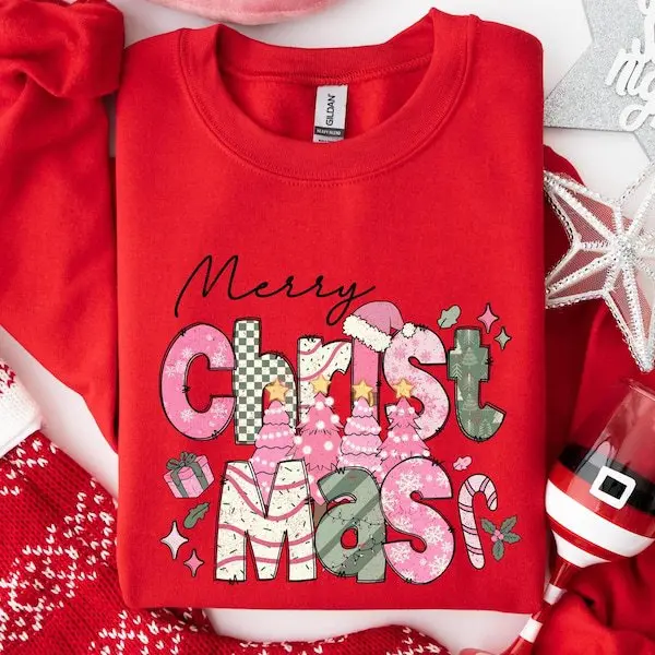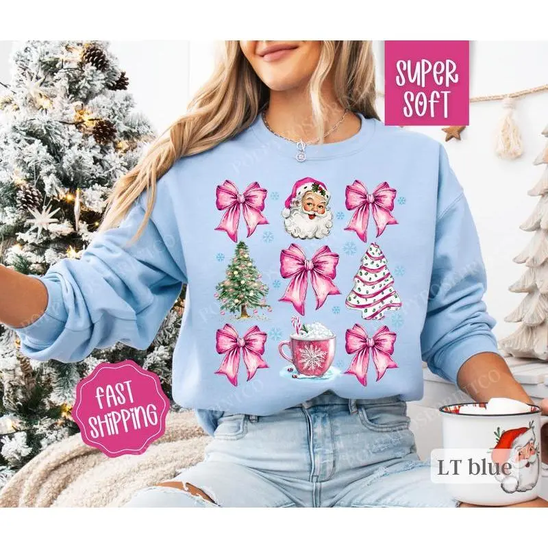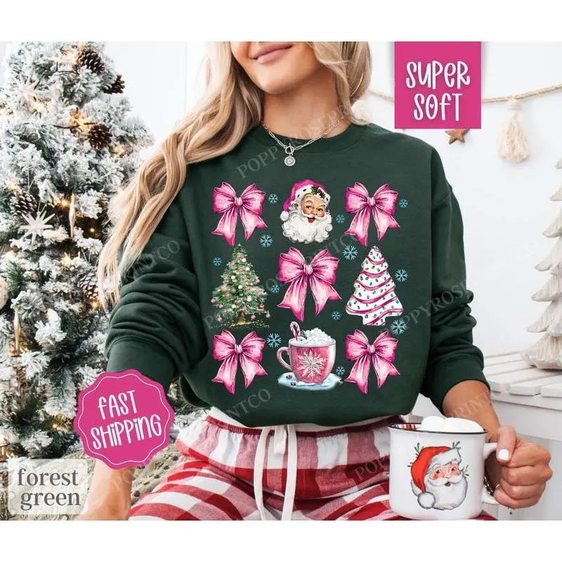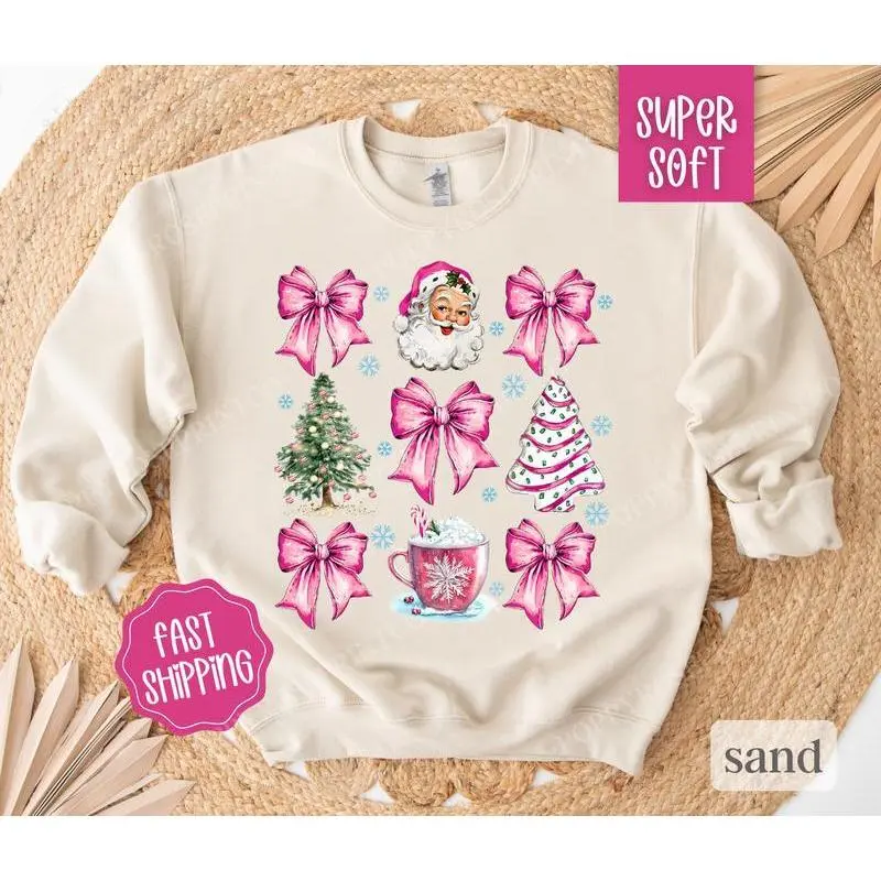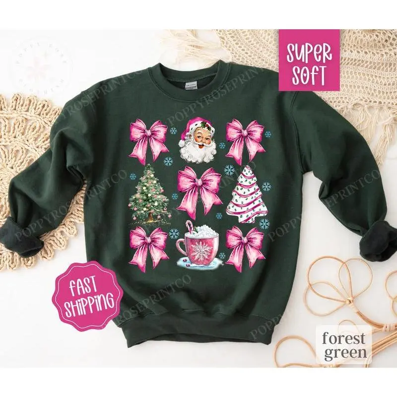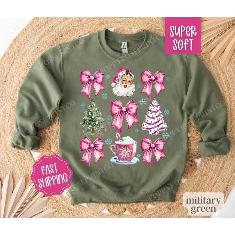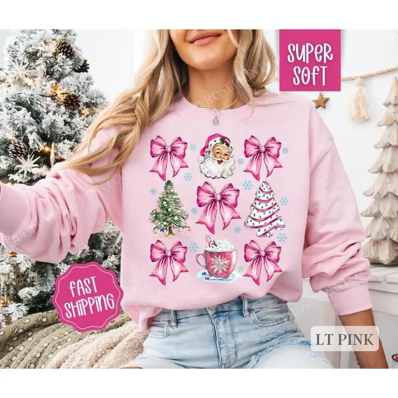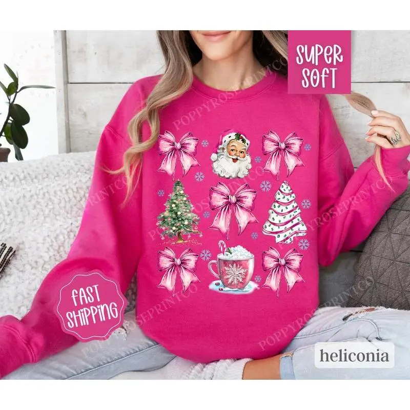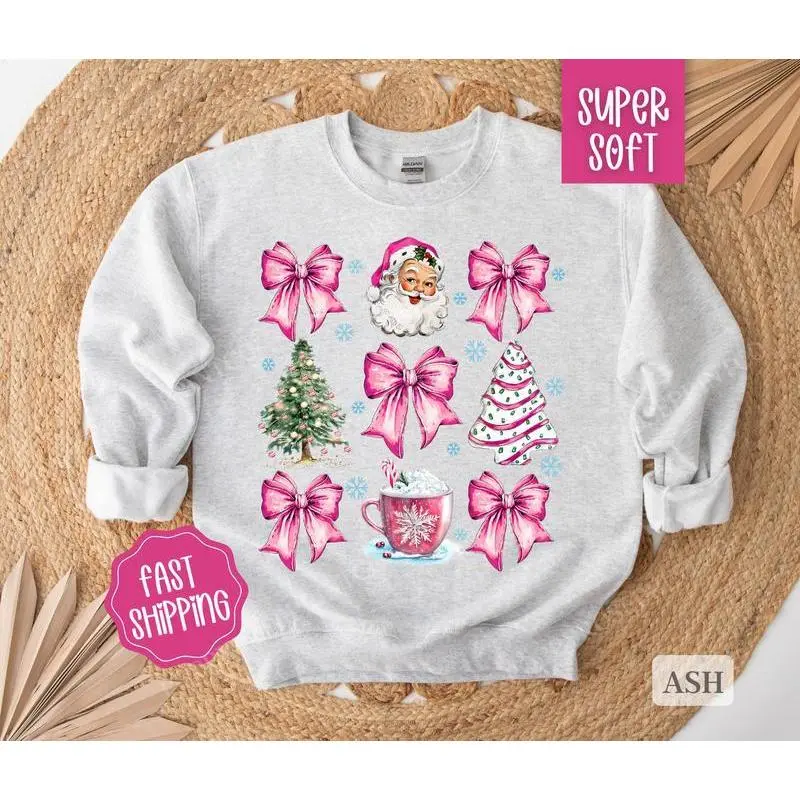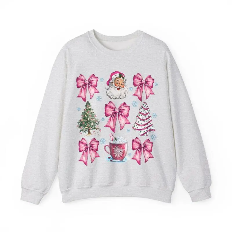 PinkSantaChristmasSweatshirt,MerryChristmasSweater,Women'sHolidayCrewneckfunnysanta
