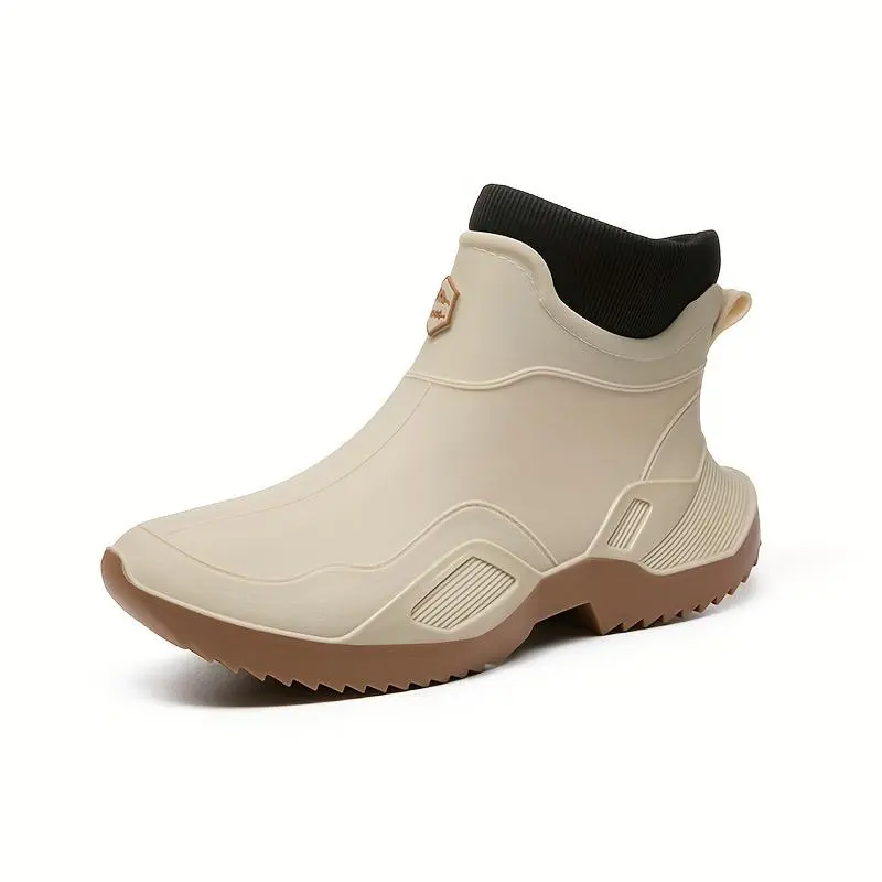 (New)Unisex Waterproof Rain Boots | Slip-On PVC Ankle Shoes with Fabric Lining | Multi-Color Options | Durable Non-Slip Sole for Outdoor & Kitchen Use | All-Season Comfort and Protection, Kitchen Footwear | Casual Waterproof Design | Rubber Ou