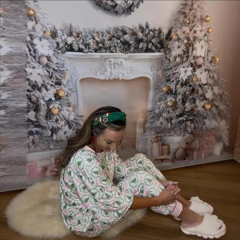 Women's autumn and winter Christmas printed long-sleeved trousers pajamas home clothes