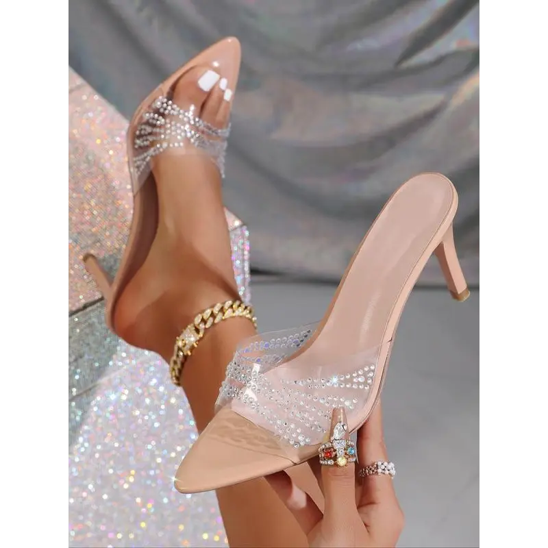 (New)Women's Fashionable Rhinestone Decorated High Heel Sandals, Elegant Square Toe Slide Sandals for Party, Daily Clothing Decor for Women & Girls, Summer(Gift)11