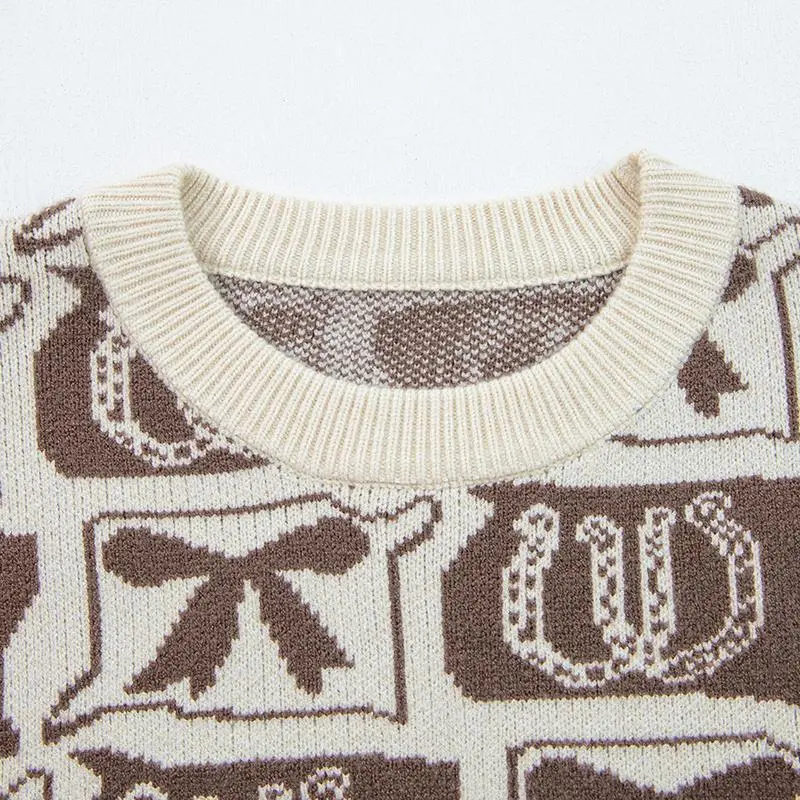 Women's Bow and Horseshoe Pattern Western Fashion Print Drop Shoulder Comfortable Sweater