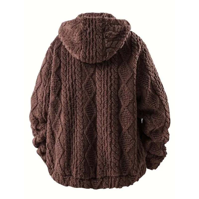 【Hooded Design】: Features a convenient hood, adding protection from the elements while ensuring a snug fit. 【Loose Fit】: Loose-fitting structure allows for ease of movement, making it suitable for active and leisure activities. 【Durable Fabric】: Crafted from robust materials, ensuring resilience against wear, promising long-lasting use even in outdoor settings. 【Long Sleeves】: Equipped with long sleeves, this jacket provides ample coverage and warmth during cooler fall and winter months. 【Fleece Material】: Made from soft fleece, it offers a cozy layer against the skin, enhancing comfort during wear.